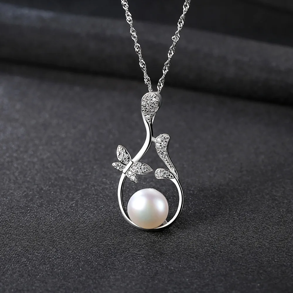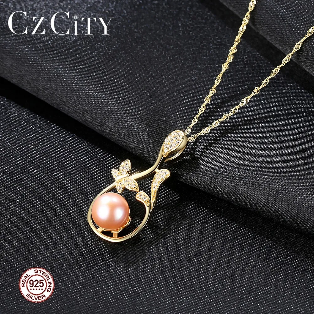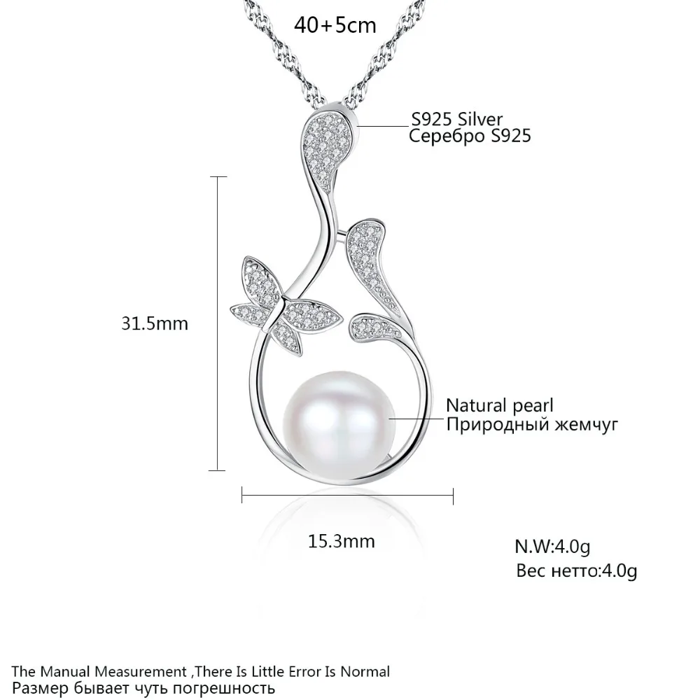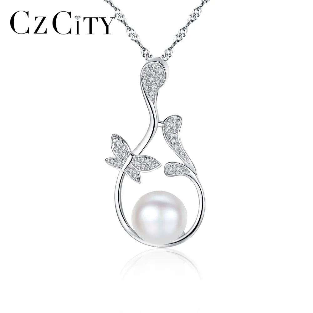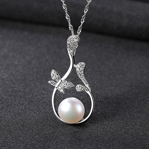 Butterfly Flowers Pendant Chain Necklace Micro Paved Zircon Stone Natural Pearl Jewelry Necklace for Women Wedding Gift