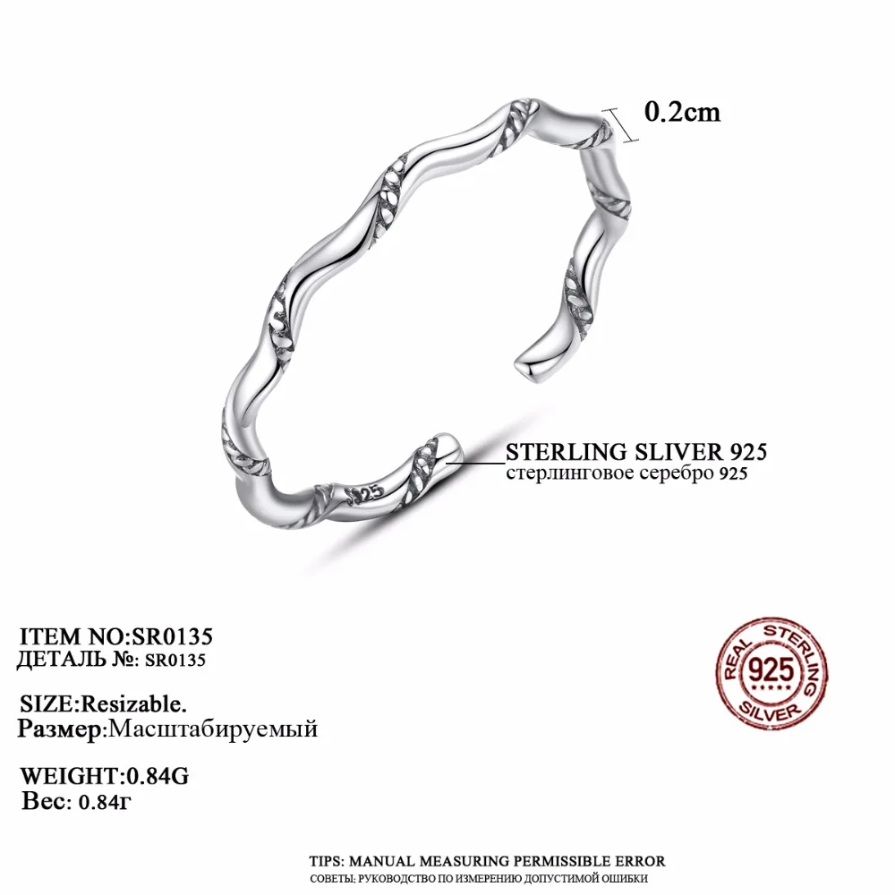 Cuff Rings Vintage Genuine 925 Sterling Silver Ring for Women Twisted Spiral Stackable Women Jewelry Mother's D Gift