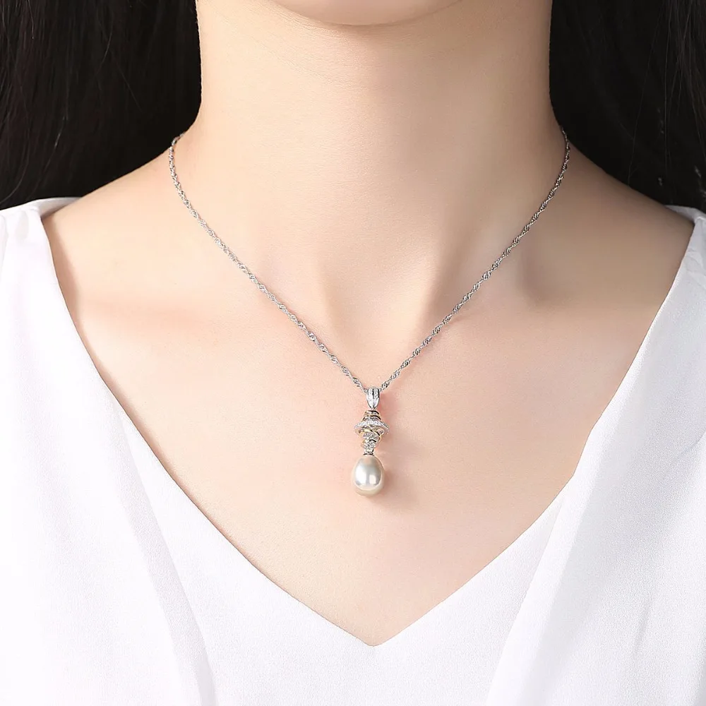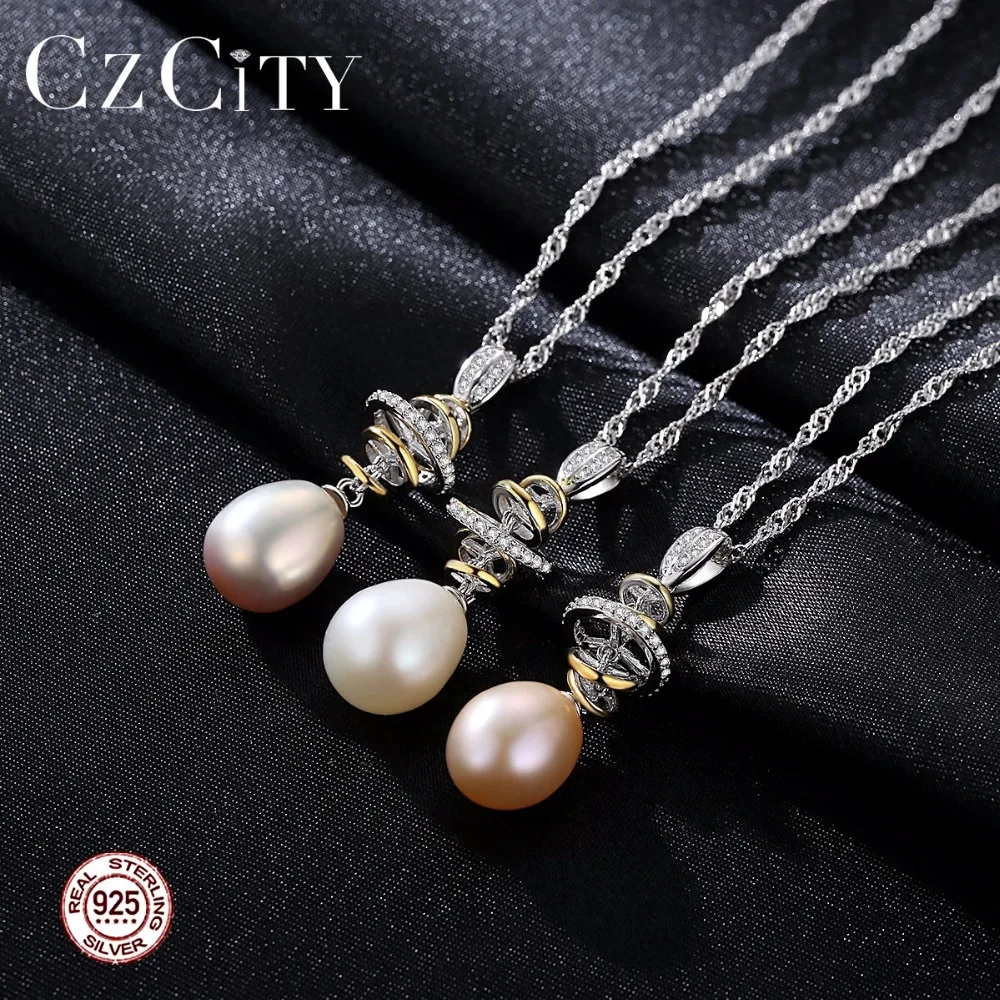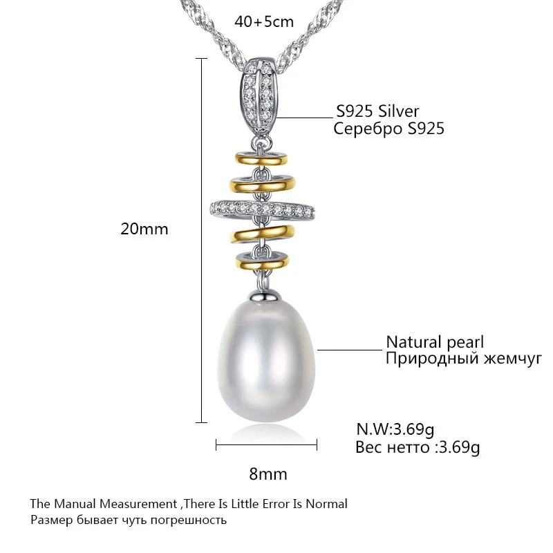 Elegant Lady 10-11mm White/ Pink/ Purple Natural Pearl 925 Sterling Silver Pendant Necklace Wedding Jewelry Women Gift