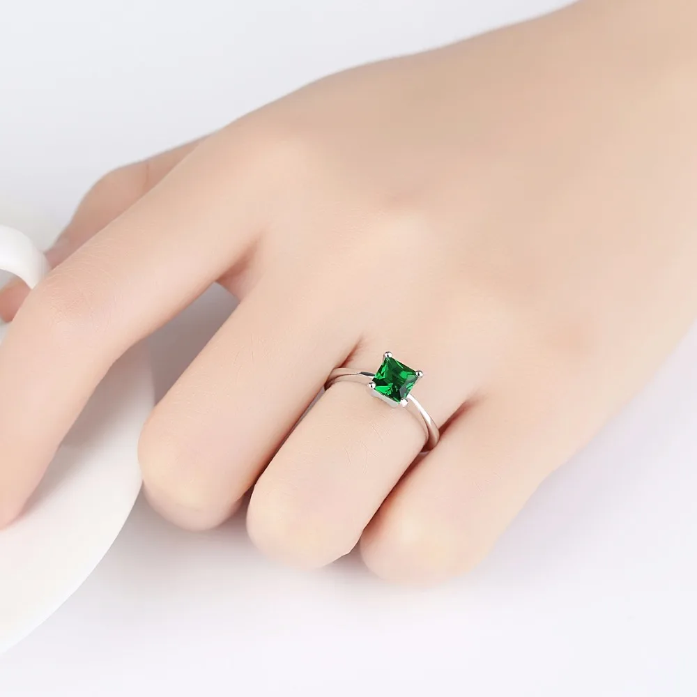 Emerald Simple Female Zircon Stone Finger Ring 925 Sterling Silver Women Jewelry Prom Wedding Engagement Rings Brand Gift