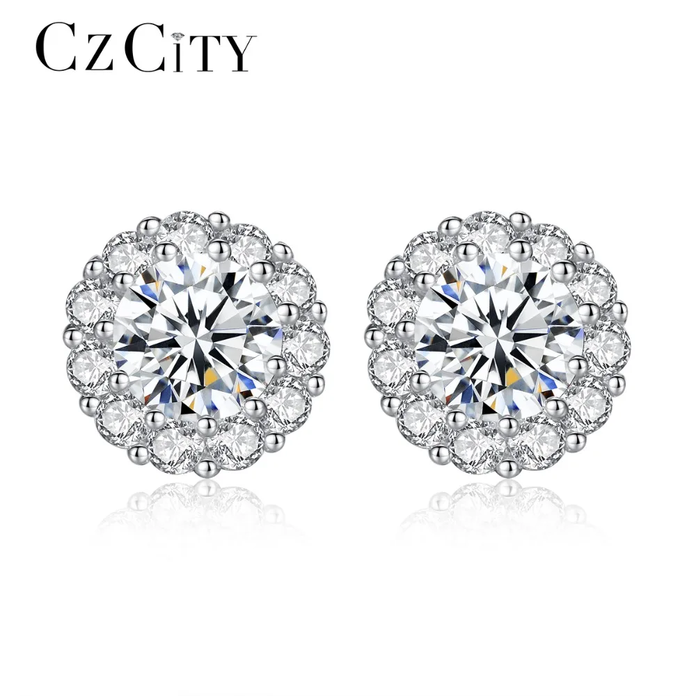 Brand Tiny Cubic Zirconia Flower Cute Stud Earrings 925 Silver Engagement Jewelry for Bride Women Earrings for Party Gift