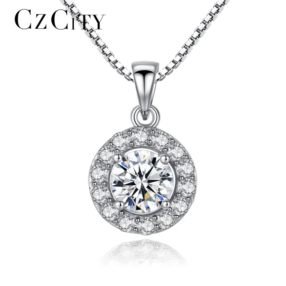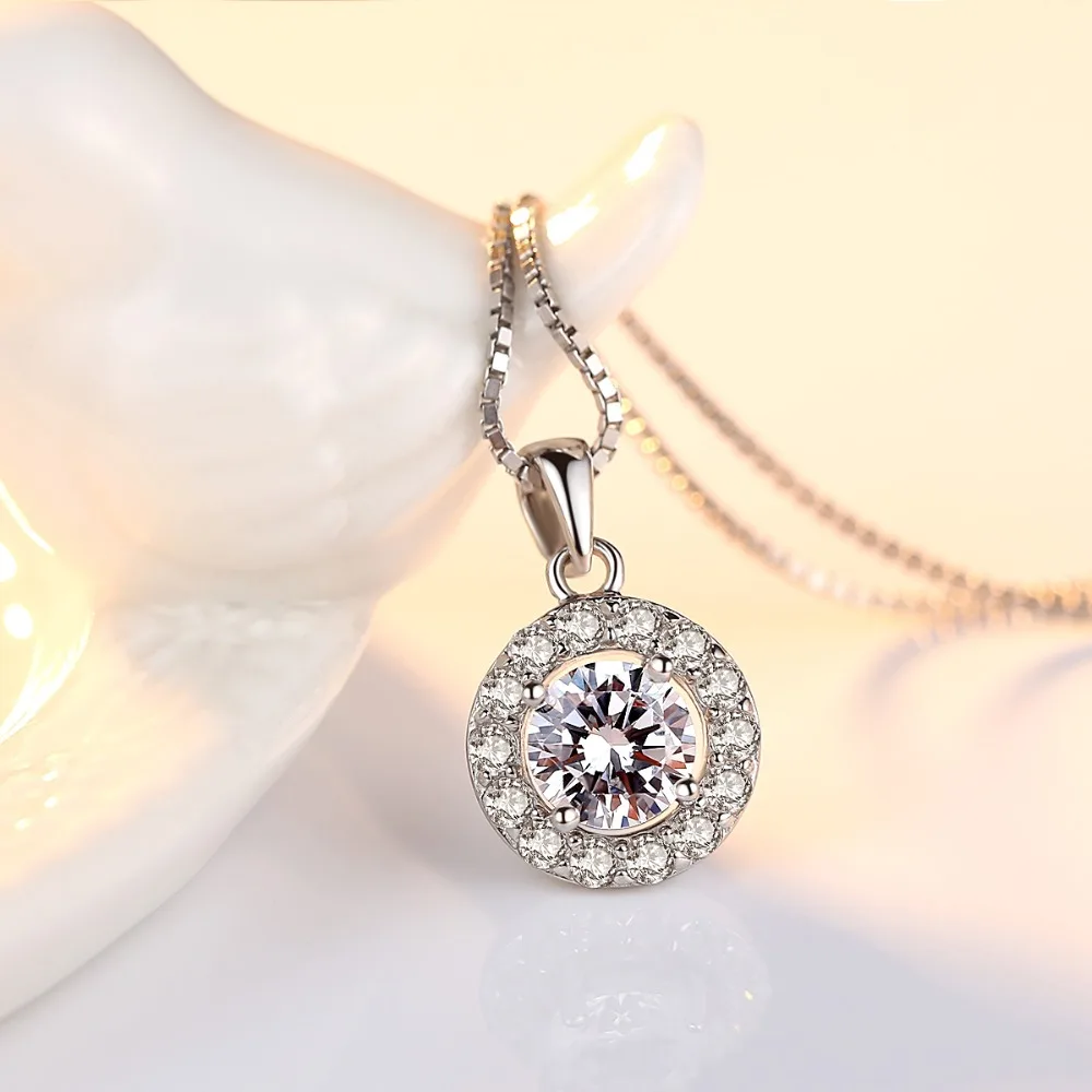 Round Pendant Necklace Office Lady Genuine 925 Sterling Silver Chain Necklaces AAA+ CZ Cubic Zirconia Fine Jewelry Brand