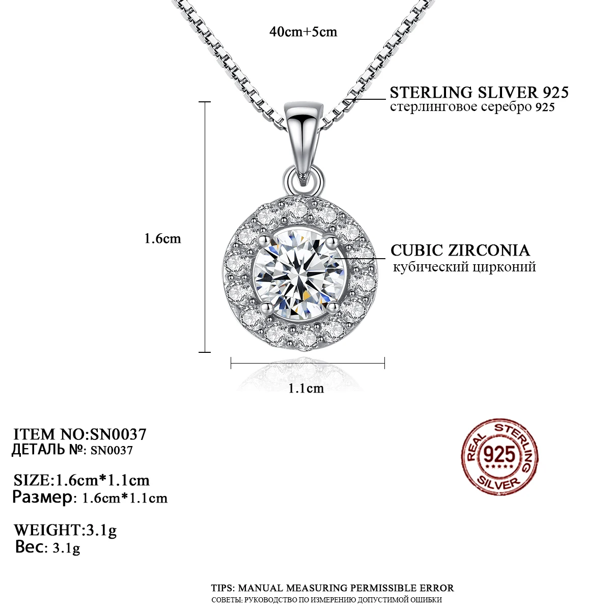 • Pendant Size: 1.6cm*1.1cm