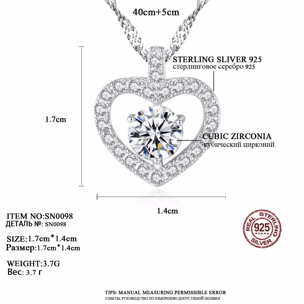 Heart Clear Cubic Zirconia Delicate Pendant with Chain Women's Necklaces Vintage CZ Crystal Charm Necklaces Jewelry Gifts