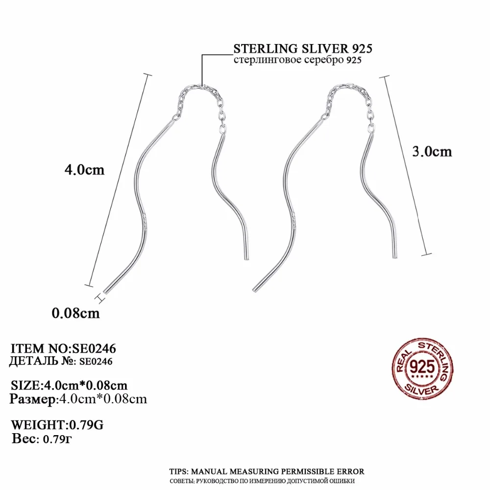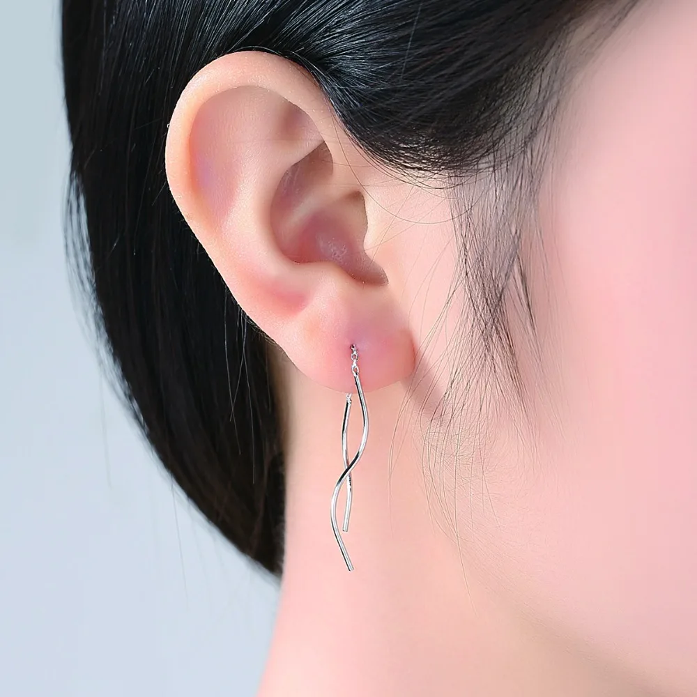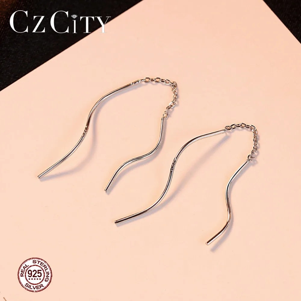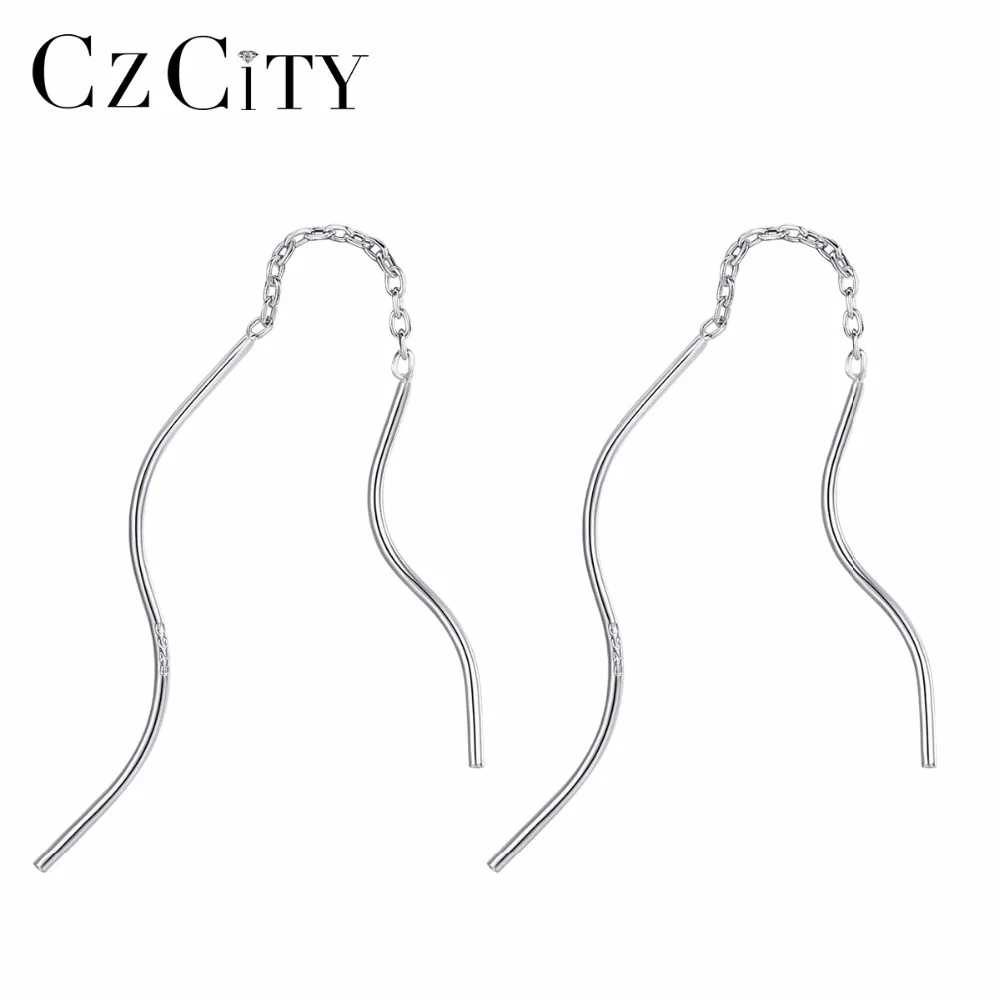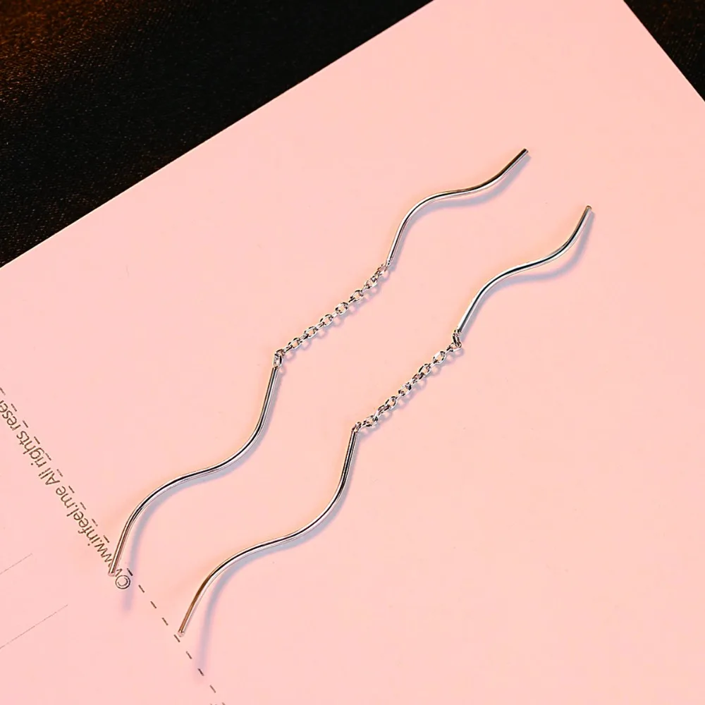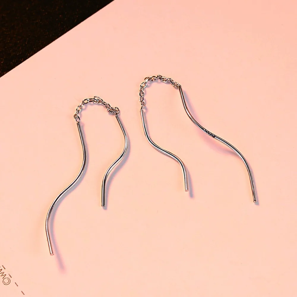 New Arrival Trendy Pure Silver Wavy Long Chain Minimalist Link Dangle Earrings For Women 925 Sterling Silver Brincos