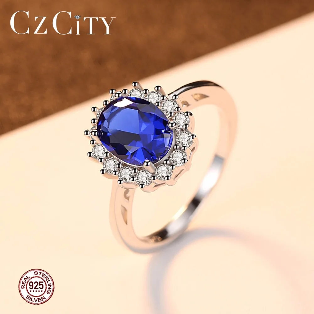 Princess Diana William Kate Diamond Rings Sapphire Blue Wedding Engagement 925 Sterling Silver Finger Ring for Women