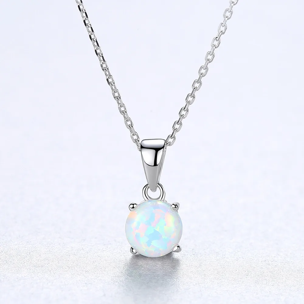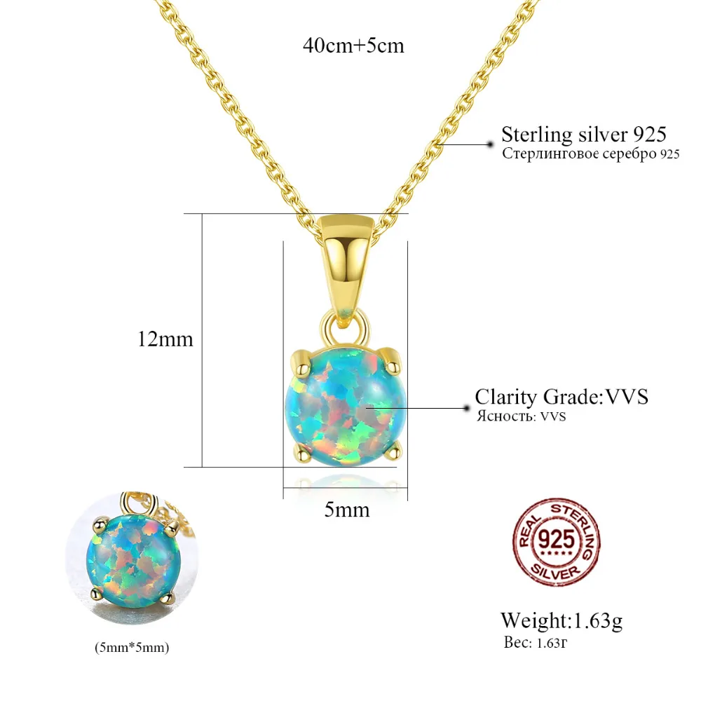 Pure Sterling Silver 925 Necklaces for Women Colorful Round Fire Opal Pendant Necklace Exquisite Jewellery Christma Gifts