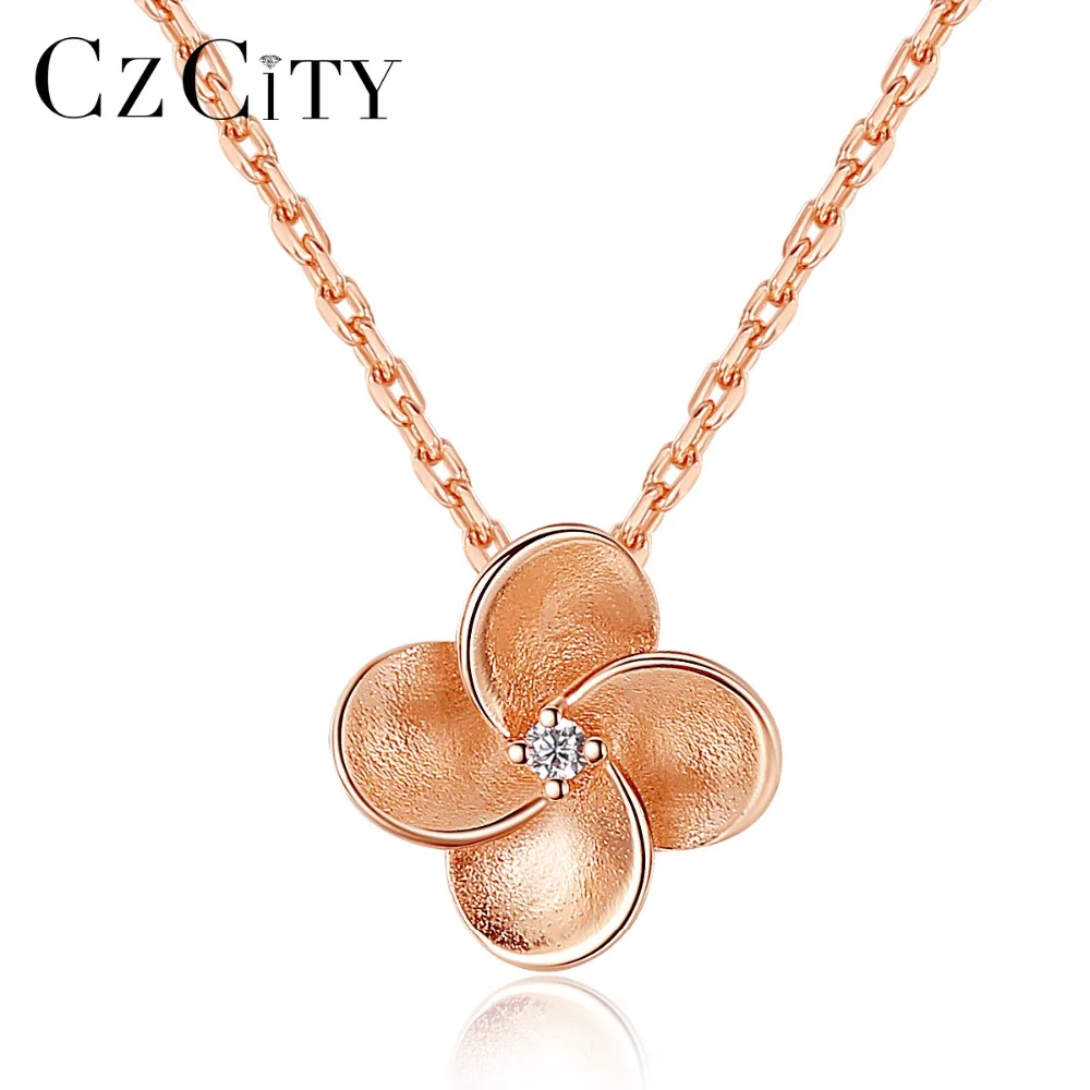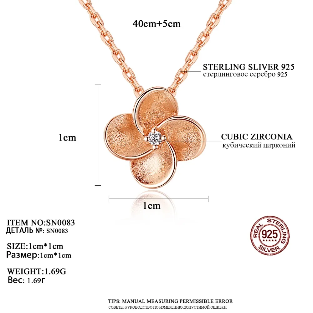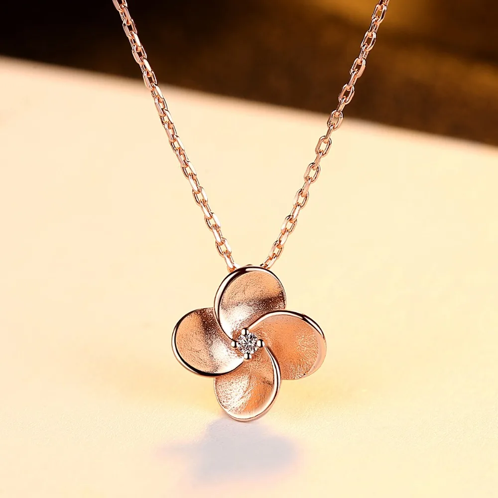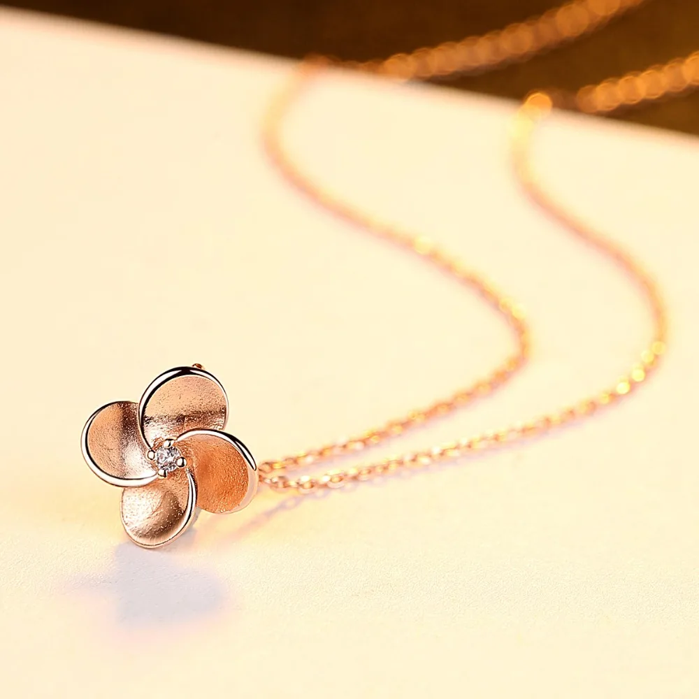 Rose Gold Color 925 Sterling Silver Necklace For Women Stipple Finish Flower Shape Pendant Necklace Collares De Moda 2020