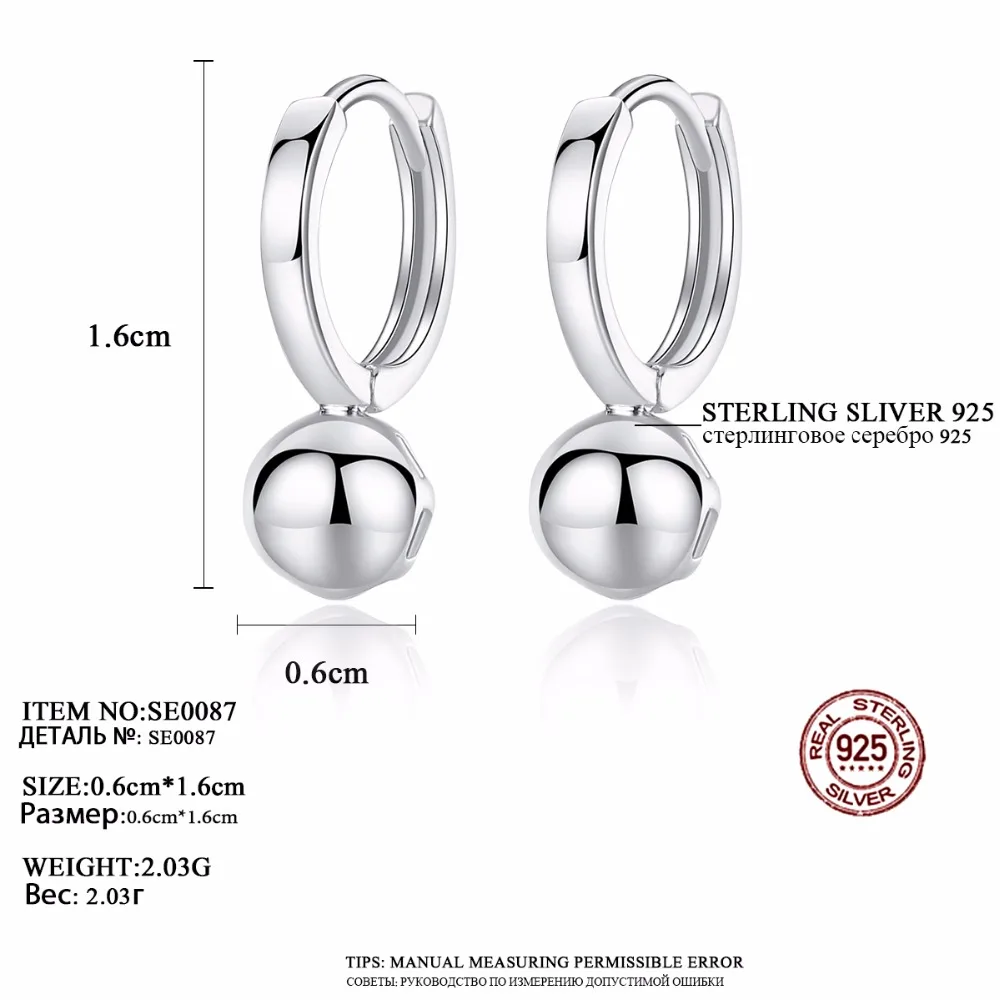 Round 925 Silver Ball Hoop Earrings Real 925 Sterling Silver Vintage Ball Earrings for Women Trendy Jewelry Gift