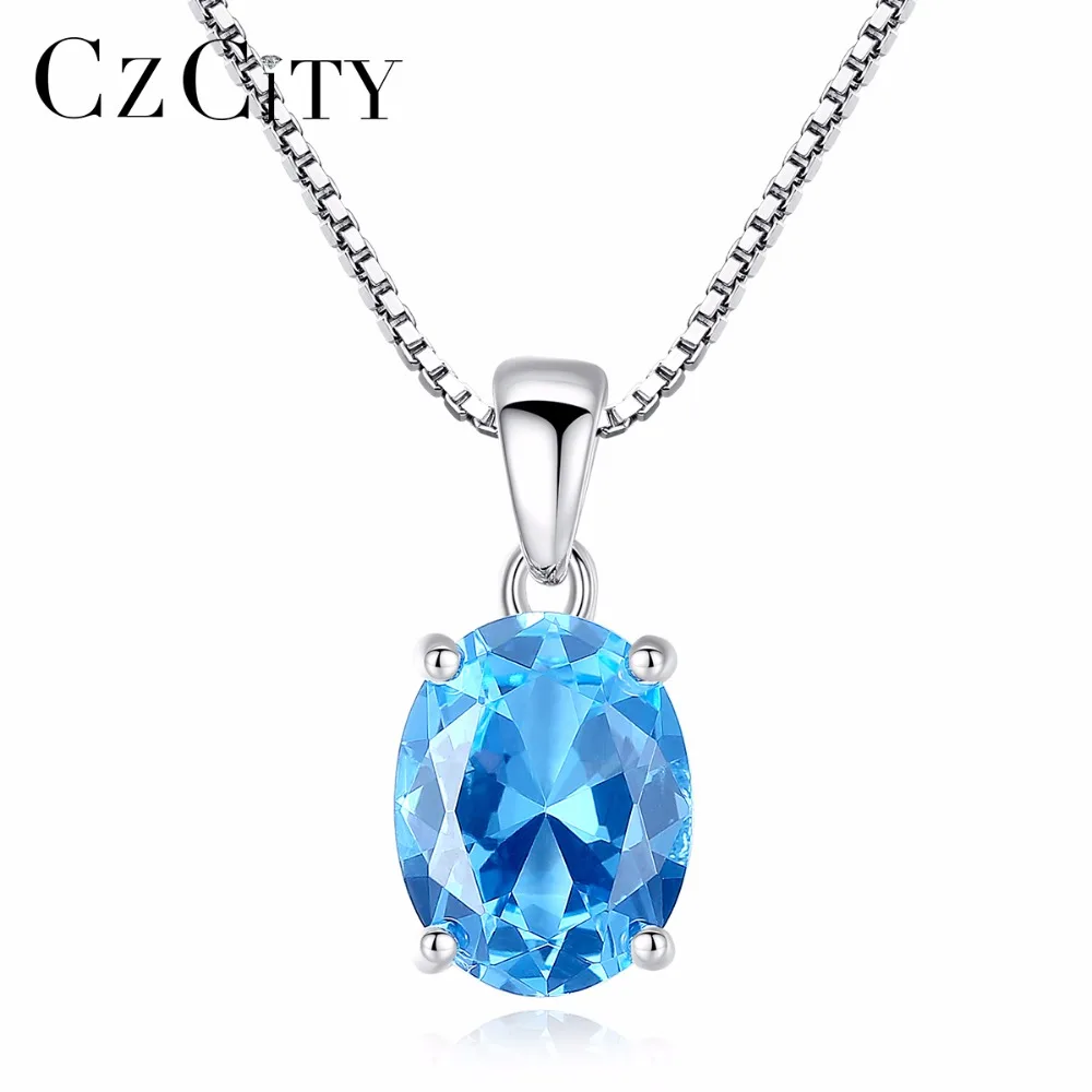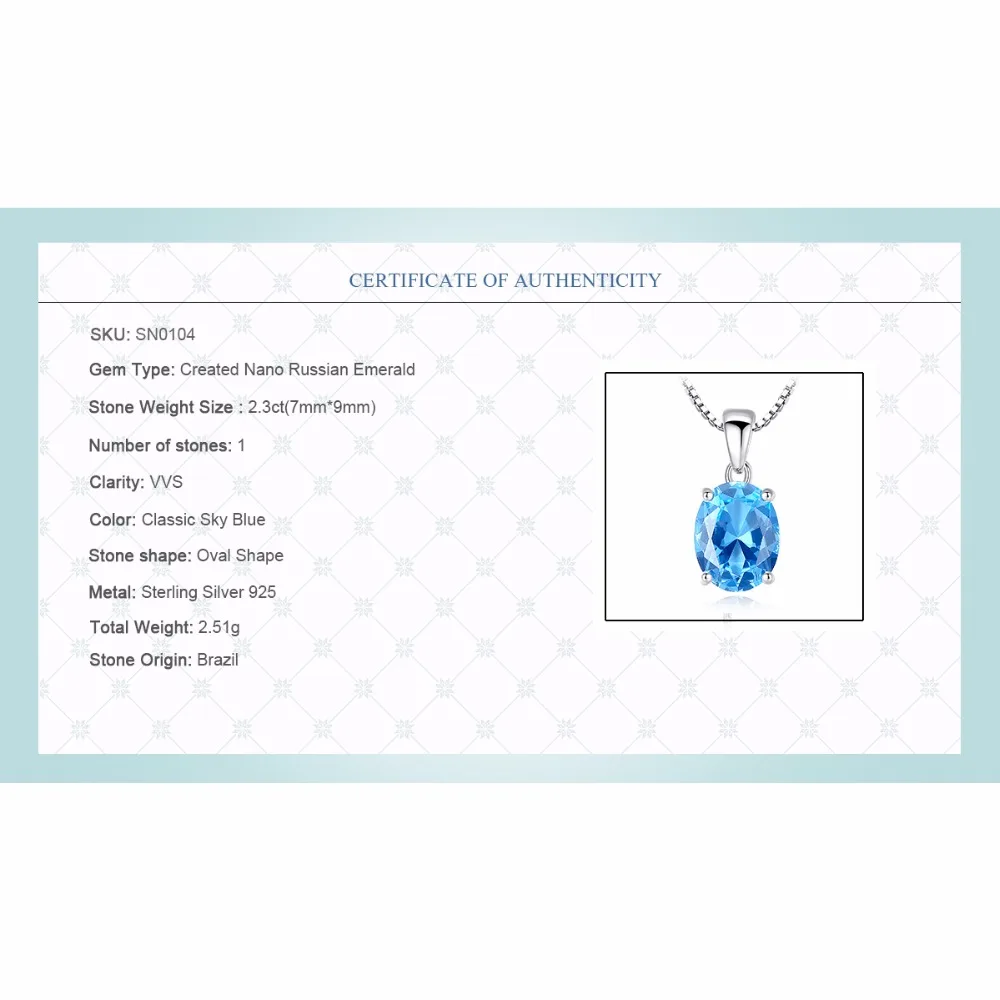 Sky Blue Topaz Stone Pendant 2.3 Carat Oval Shape Solitaire Natural Topaz 925 Sterling Silver Chain Necklace for Women