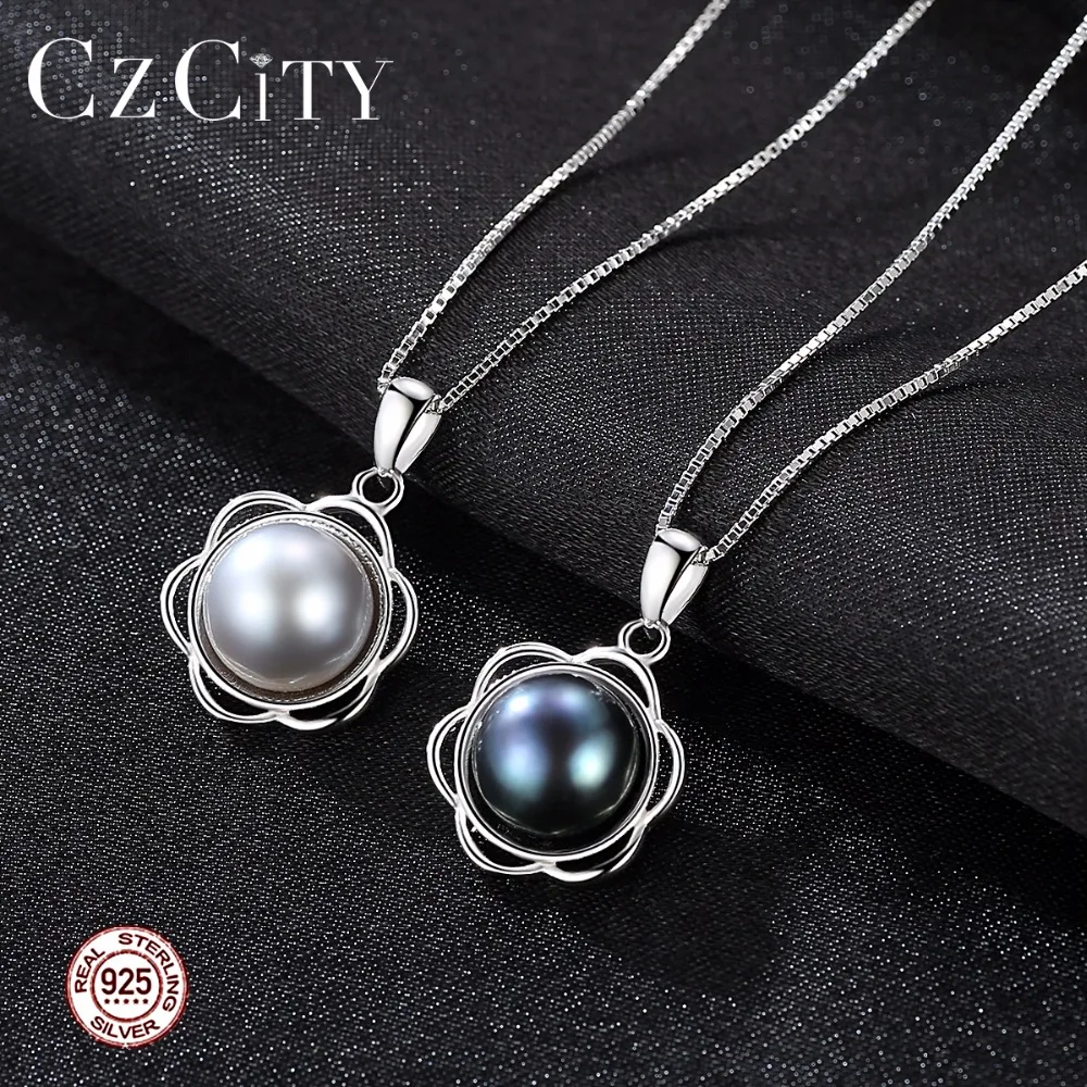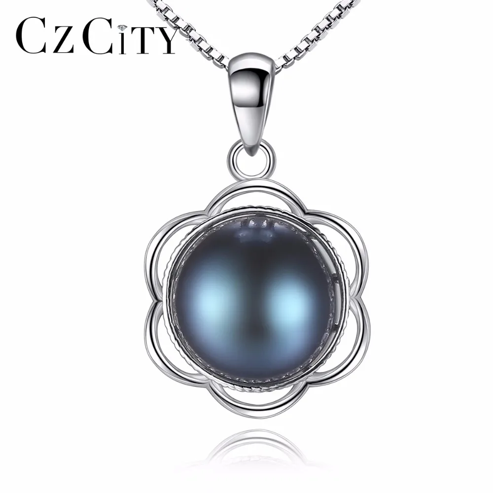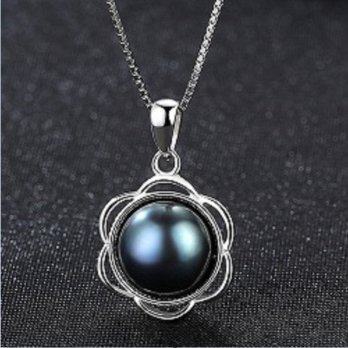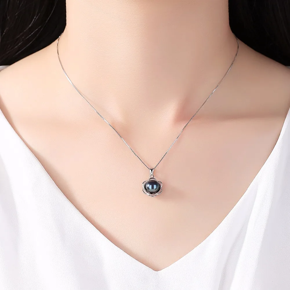 The Latest 100% Natural 8-8.5mm Black Gr Pearl Flower Shape Trendy Pendant Necklace with 925 Sterling Silver