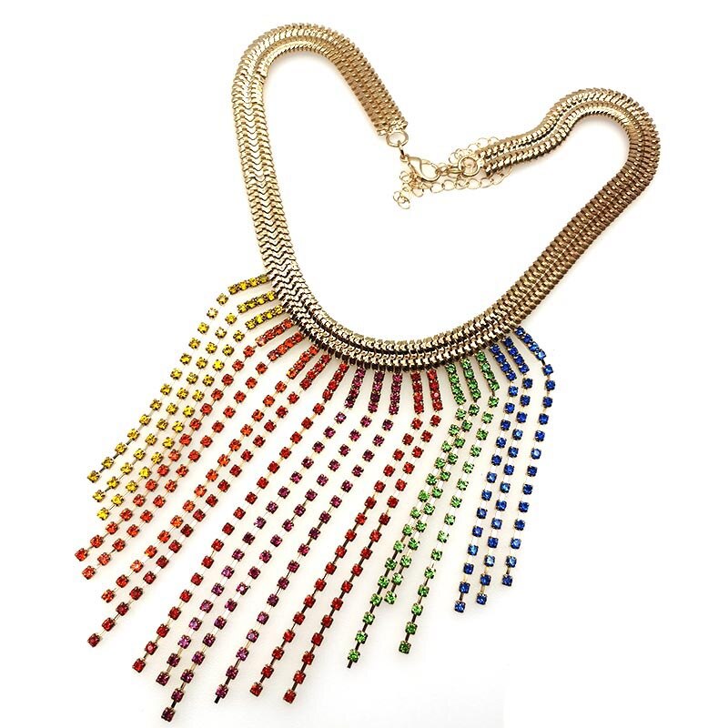D&D Bohemian Big Rhinestone Necklace Choker Crystal Gem Statement Necklace Tassel Chocker Necklace Pendants Women Jewelry