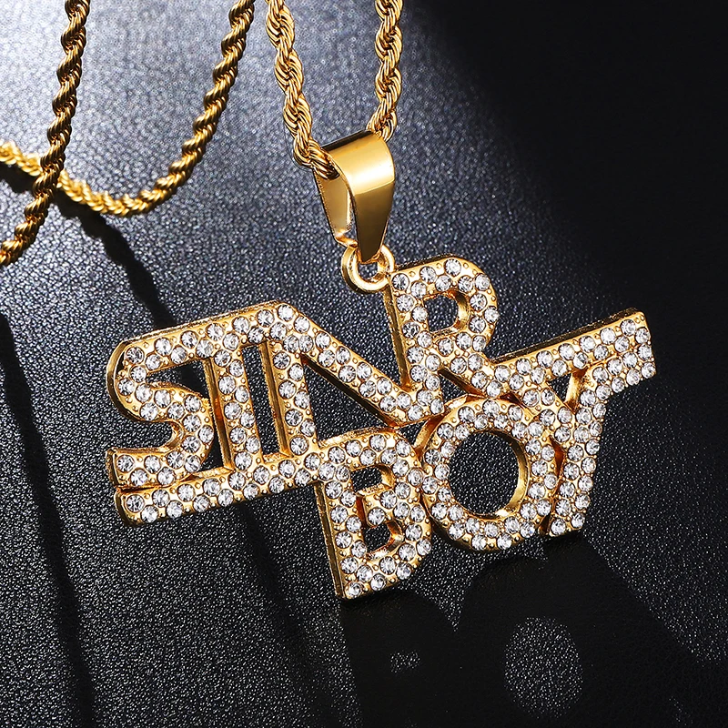 D&Z Personality Iced Out Rhinestone Letters Necklace Gold Color Bling Bling Word Pendant Necklace For Boys