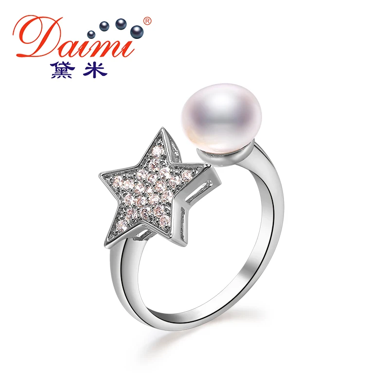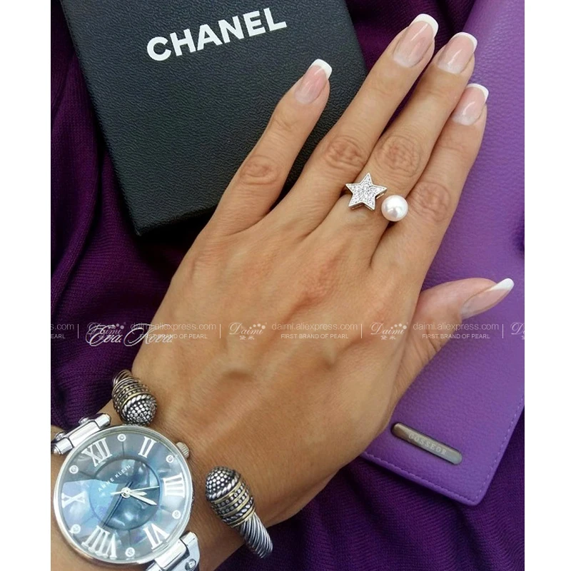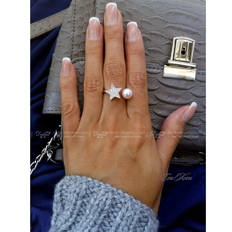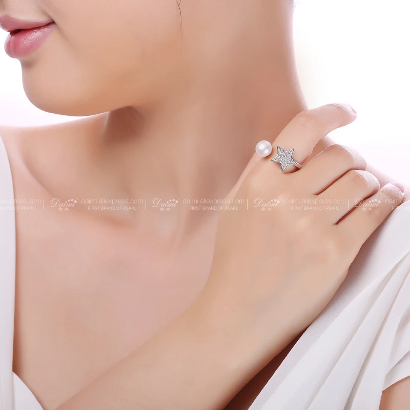 Beautiful ring 8-9mm pearl rings Brand Rhinestone Ring Jewelry Wedding Engagement Rings For Women