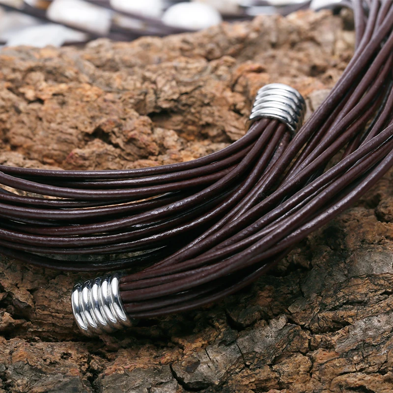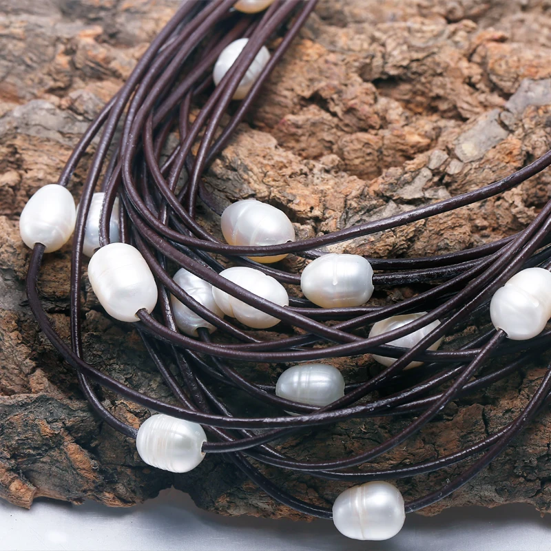 Big 9-10mm pearl Necklace White Pearl & Leather Necklace For Women