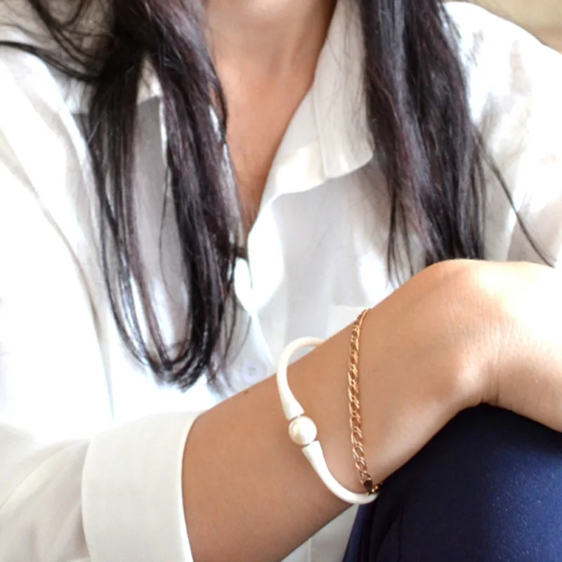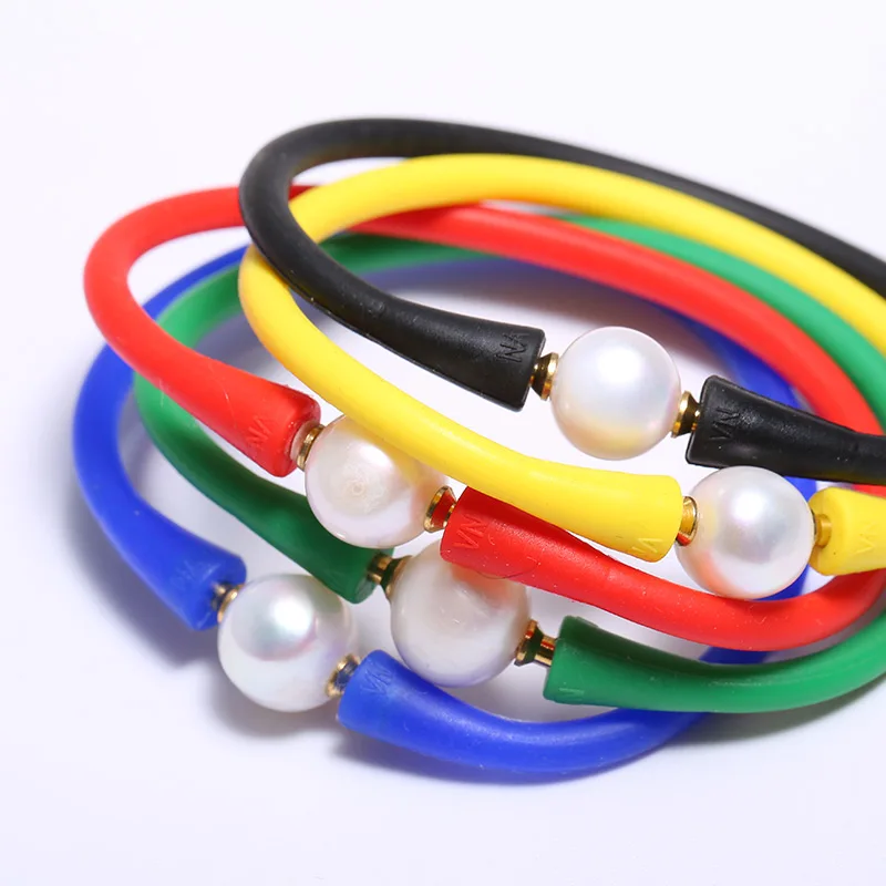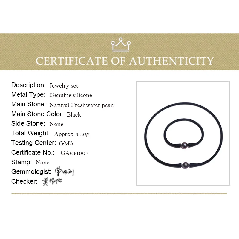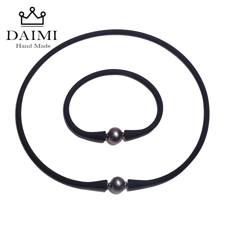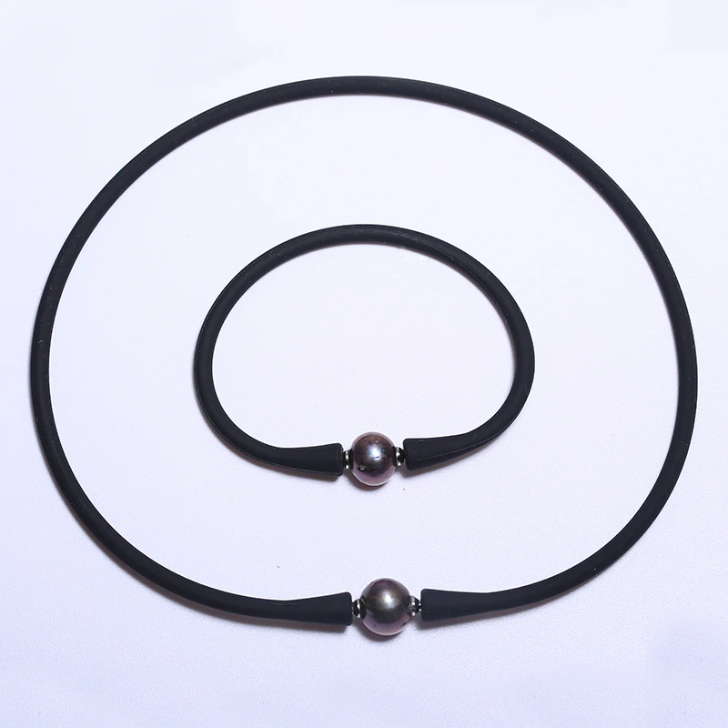 Black Silicone Hologram Necklace Bracelet Set 11mm Black Pearl Set Waterproof Jewelry Sets Casual/Sporty