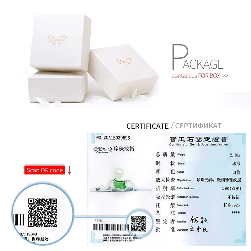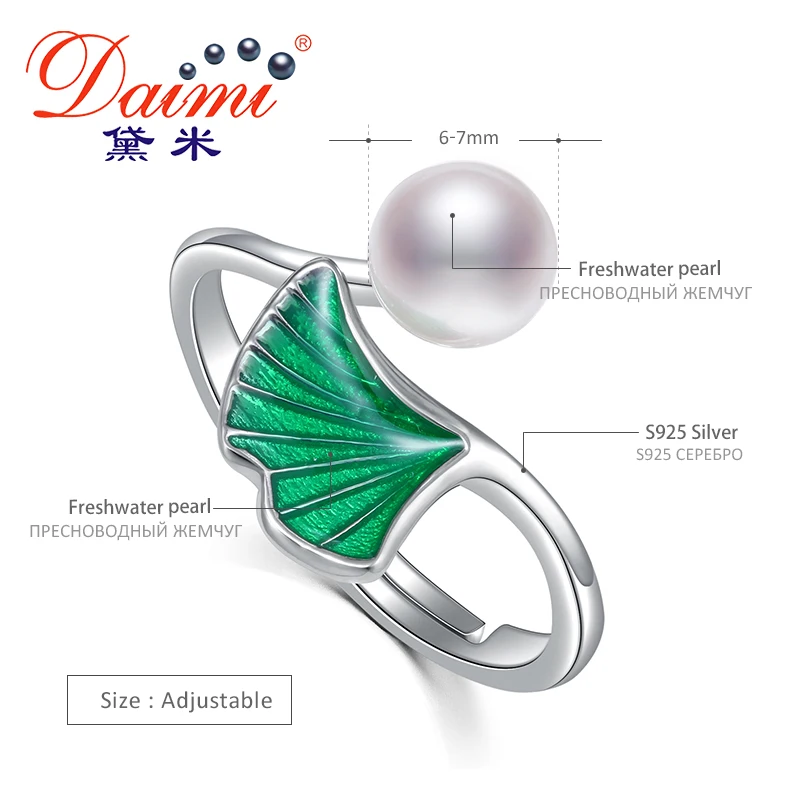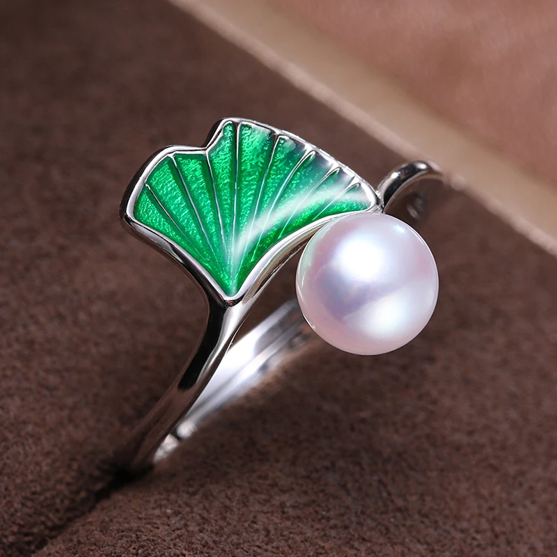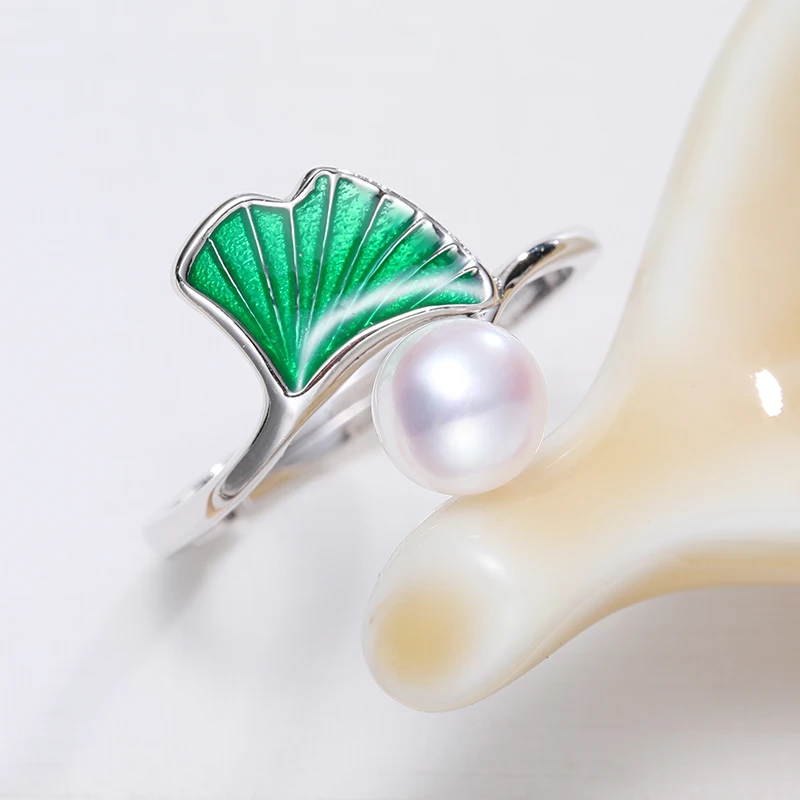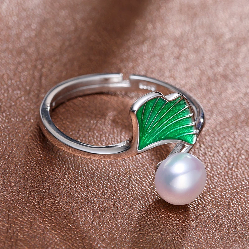 Ginkgo Ring S925 Sterling Silver Ring 6-7mm White Pearl Ring Romantic Fine Jewelry For Women