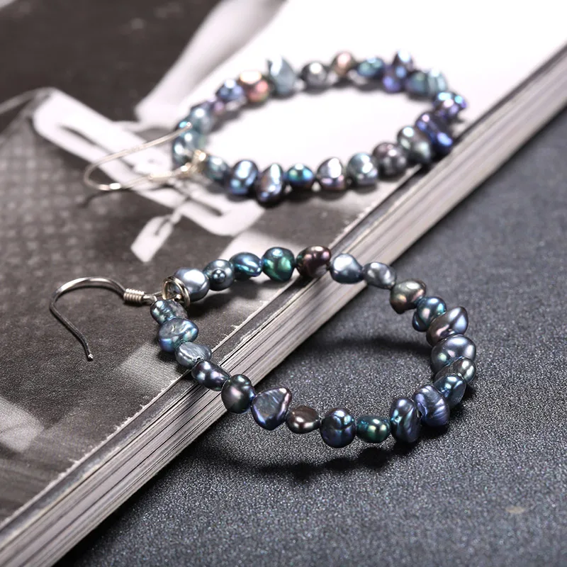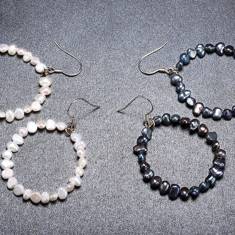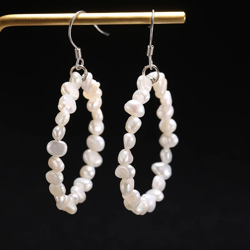 Silver Hoop Earrings Cultured 5-6mm Pearls Earring 925 Sterling Silver Dangler Earrings Instagram Jewelry