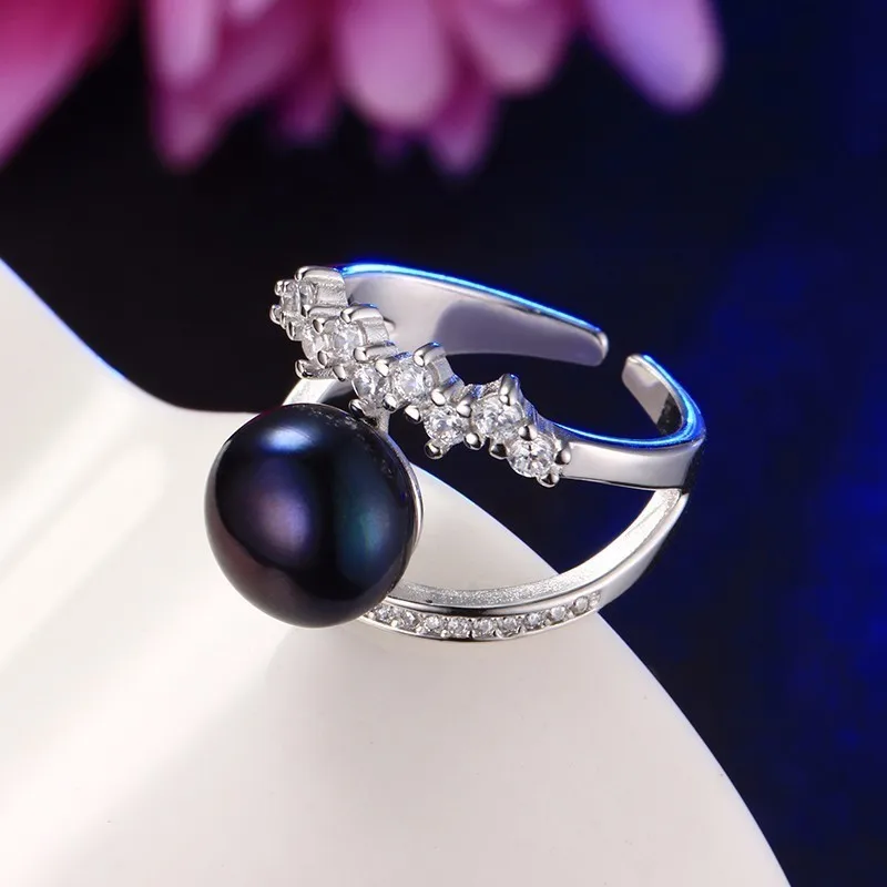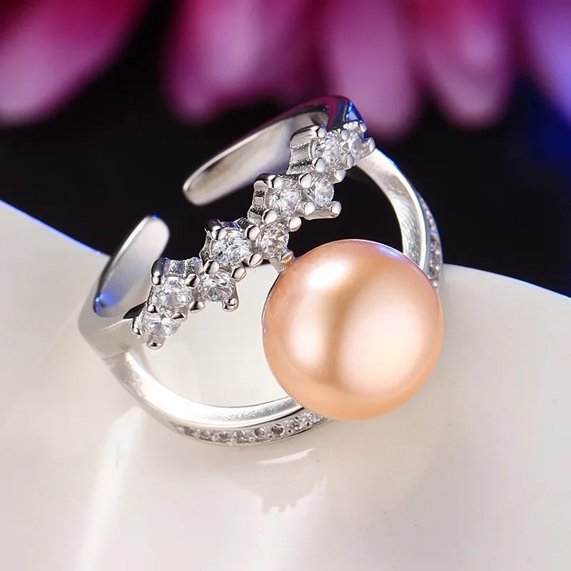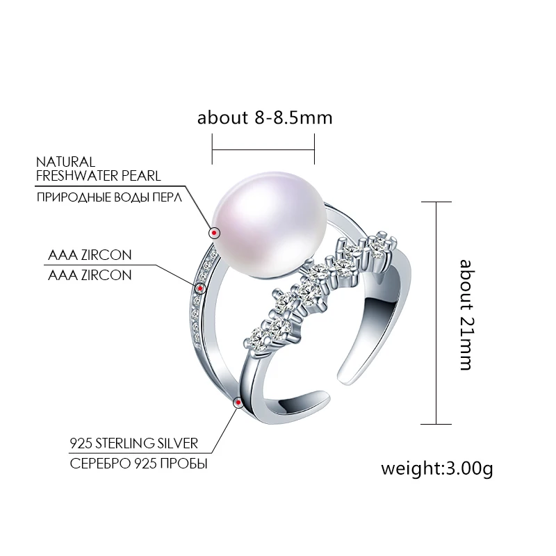100% 925 Sterling Silver Pearl Rings for Women Adjustable Open Pearl Ring Bright AAA Zircon Trendy Jewelry For Girls