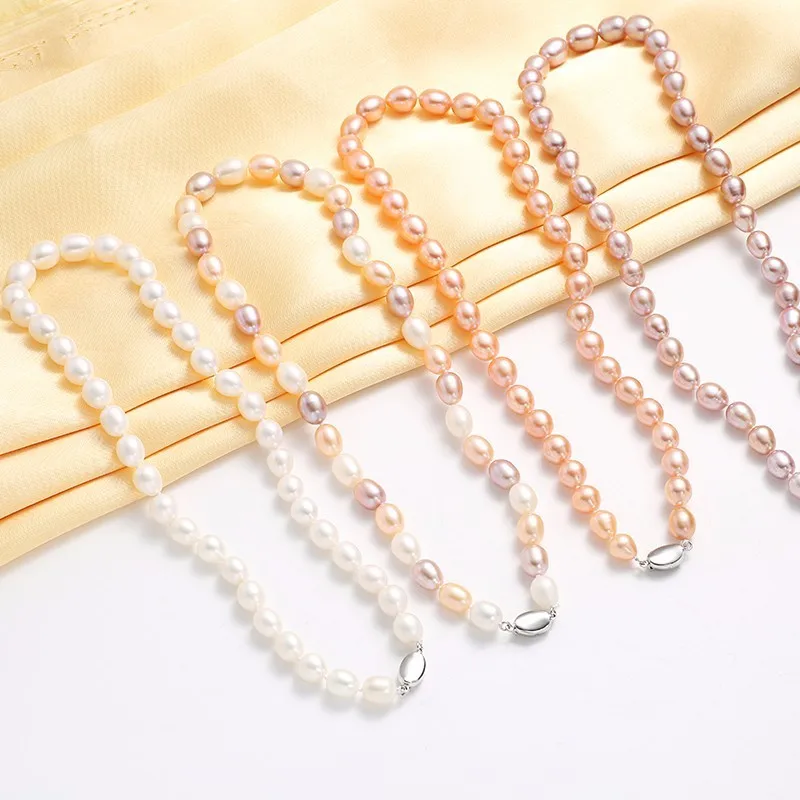 Beautiful Real 925 Sterling Silver Pearl Necklace,Natural Pearl,45cm Length,Fine Jewelry Women Necklace