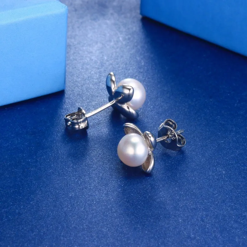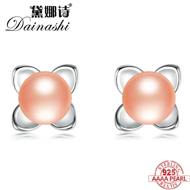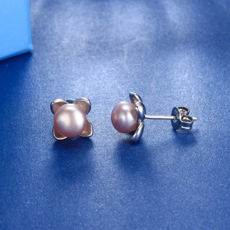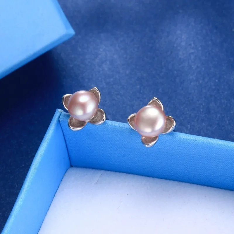 classic Lotus flower shape 925 sterling silver original pearl stud earrings fine jewelry for wedding gifts