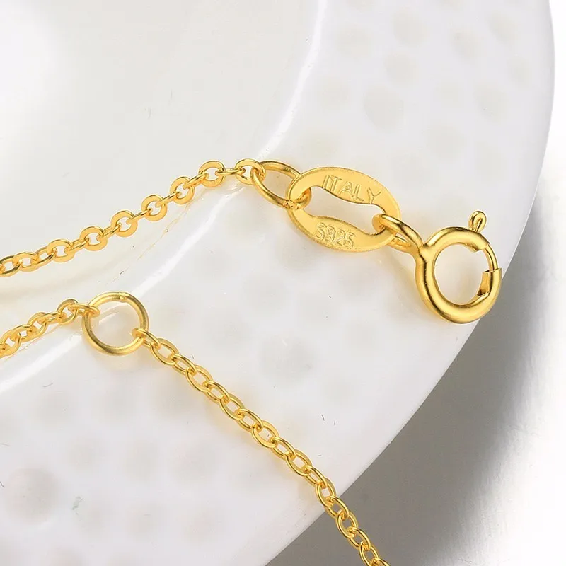 Fashion Solid Silver Women Chains,925 Sterling Silver Necklace,Golden Color, High Quality Anti Allergic,45cm,Gift Box
