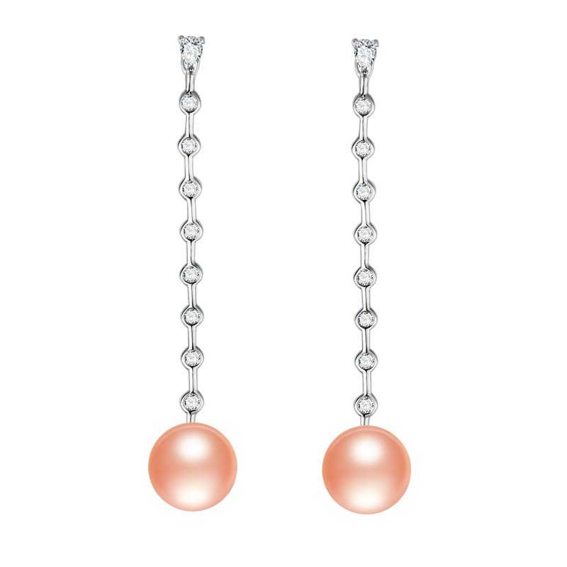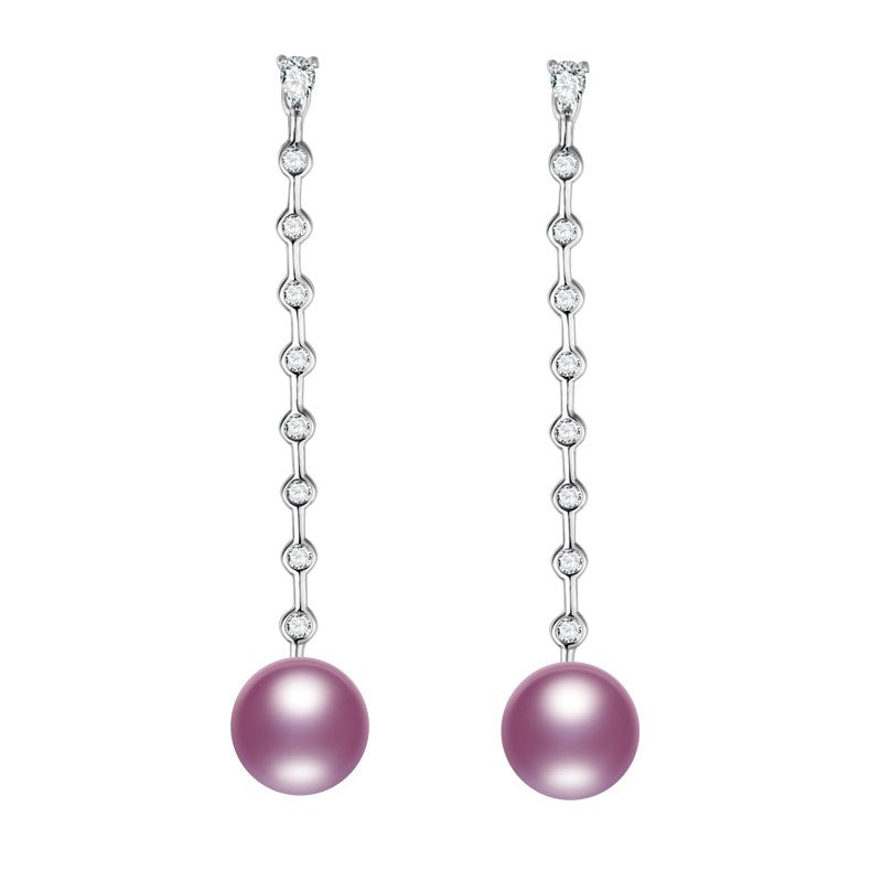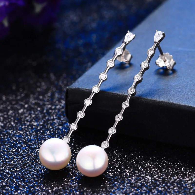 Long Pearl Earrings 925 Sterling Silver Natural Pearl Earrings Fine Jewelry Long Earrings with Many Zircon