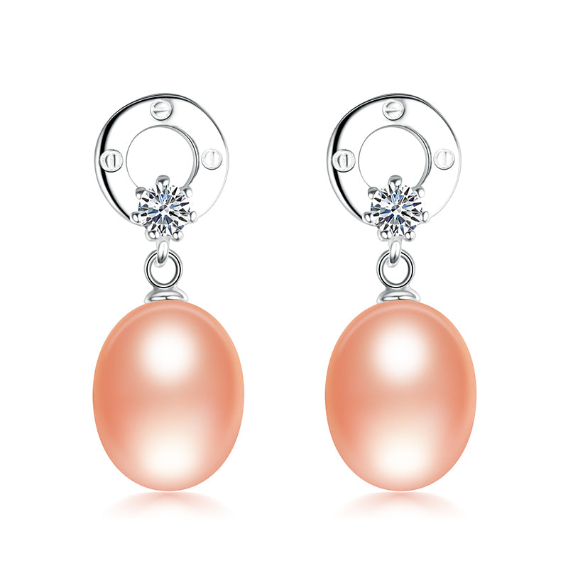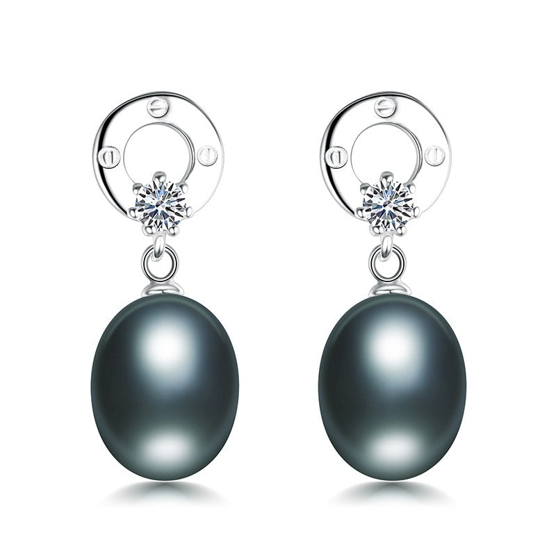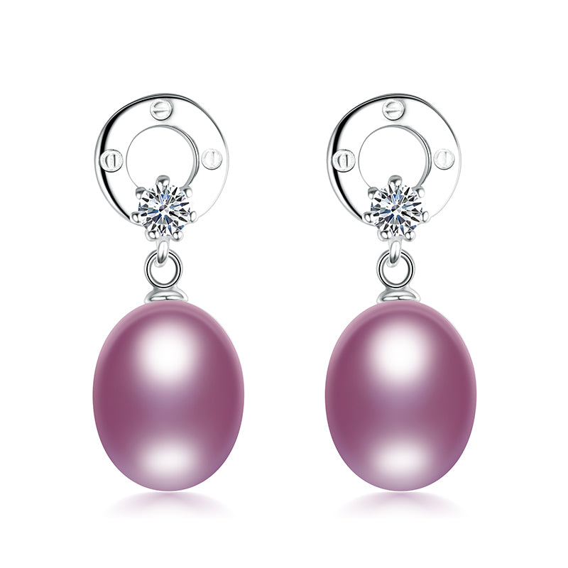 round classic 925 sterling silver white/pink/purple/black pearl earrings with AAA Zircon fine jewelry