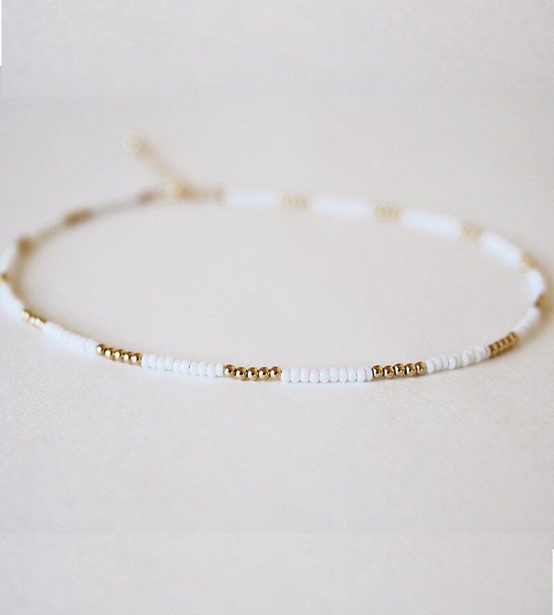 Dainty Beaded Choker Seed Bead Choker White and Gold Choker Gold Beads Seed Beads Gold Necklace White Choke