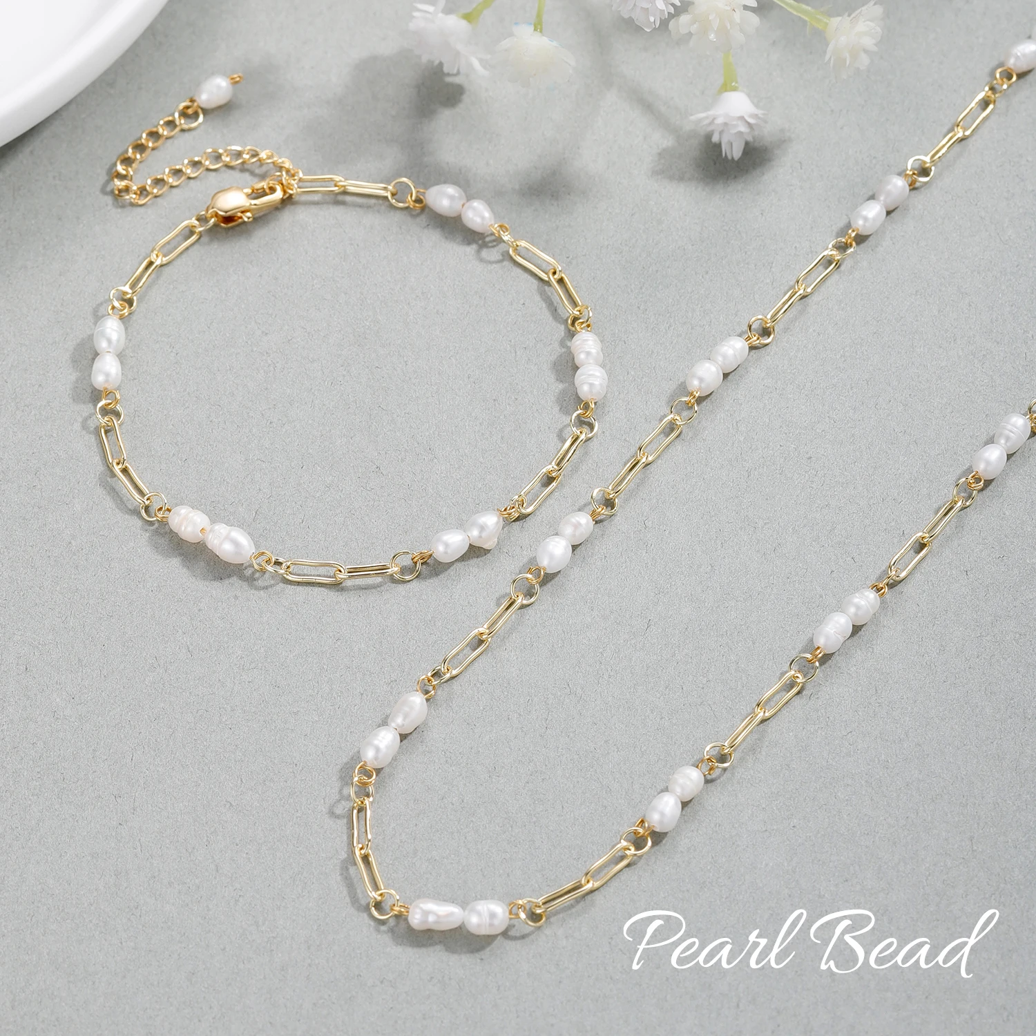 Dainty Pearl Choker Necklace & Bracelet/Gold Pearl Necklace/Real Freshwater Pearls/Necklace And Bracelet Set Adjustable Jewelry