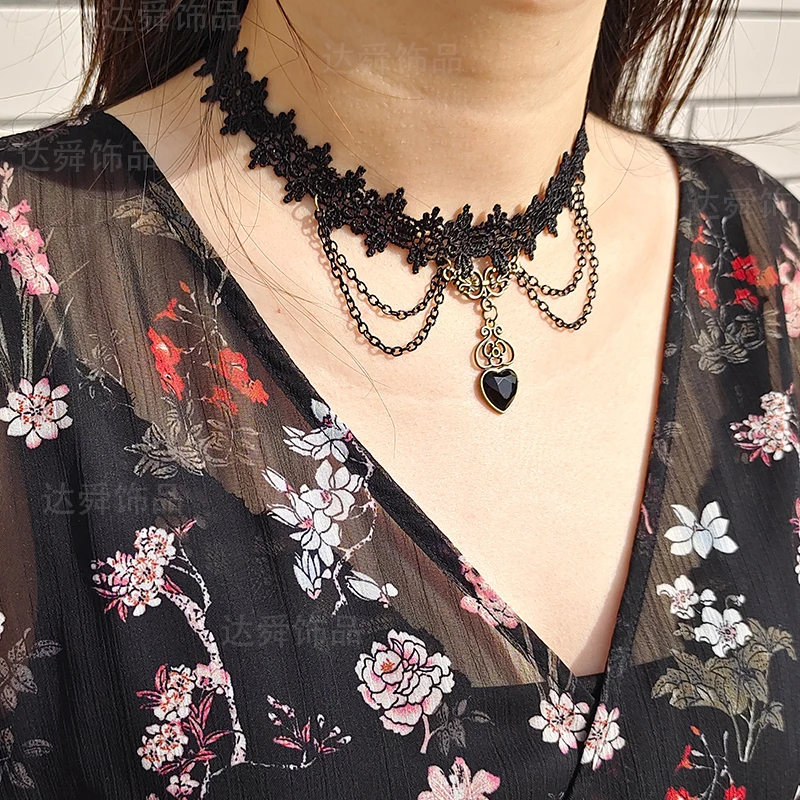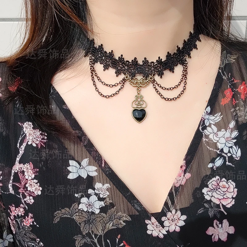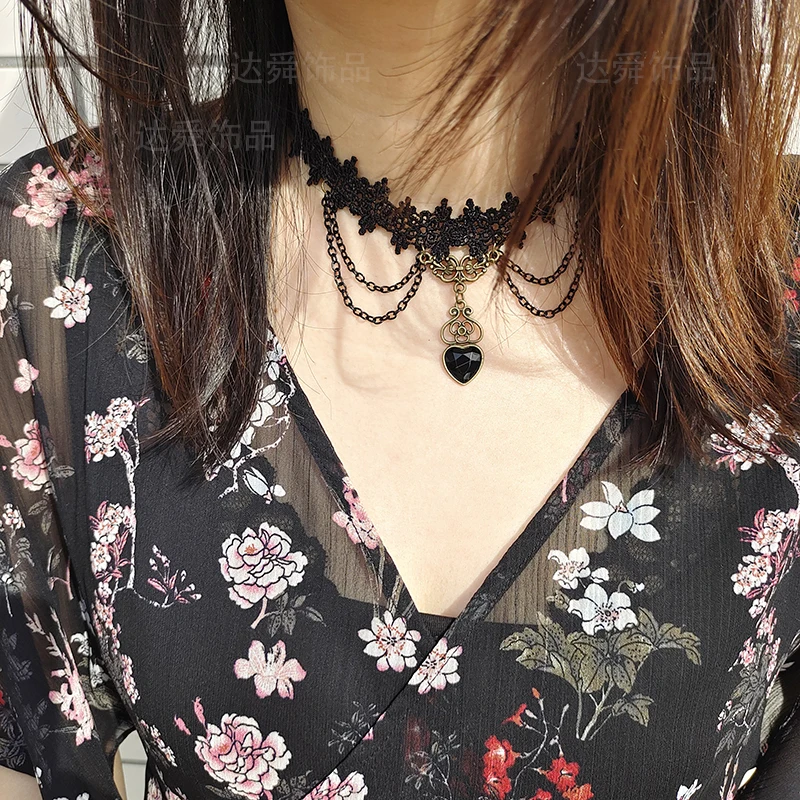 Dark Girl Black Lace Choker Heart Necklace 2021 Harajuku Punk Gothic Sexy Cute Collar love Necklace Female accessories Jewelry