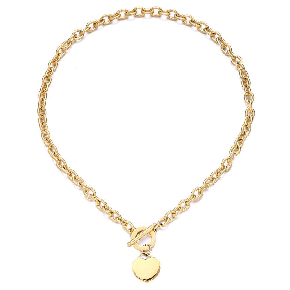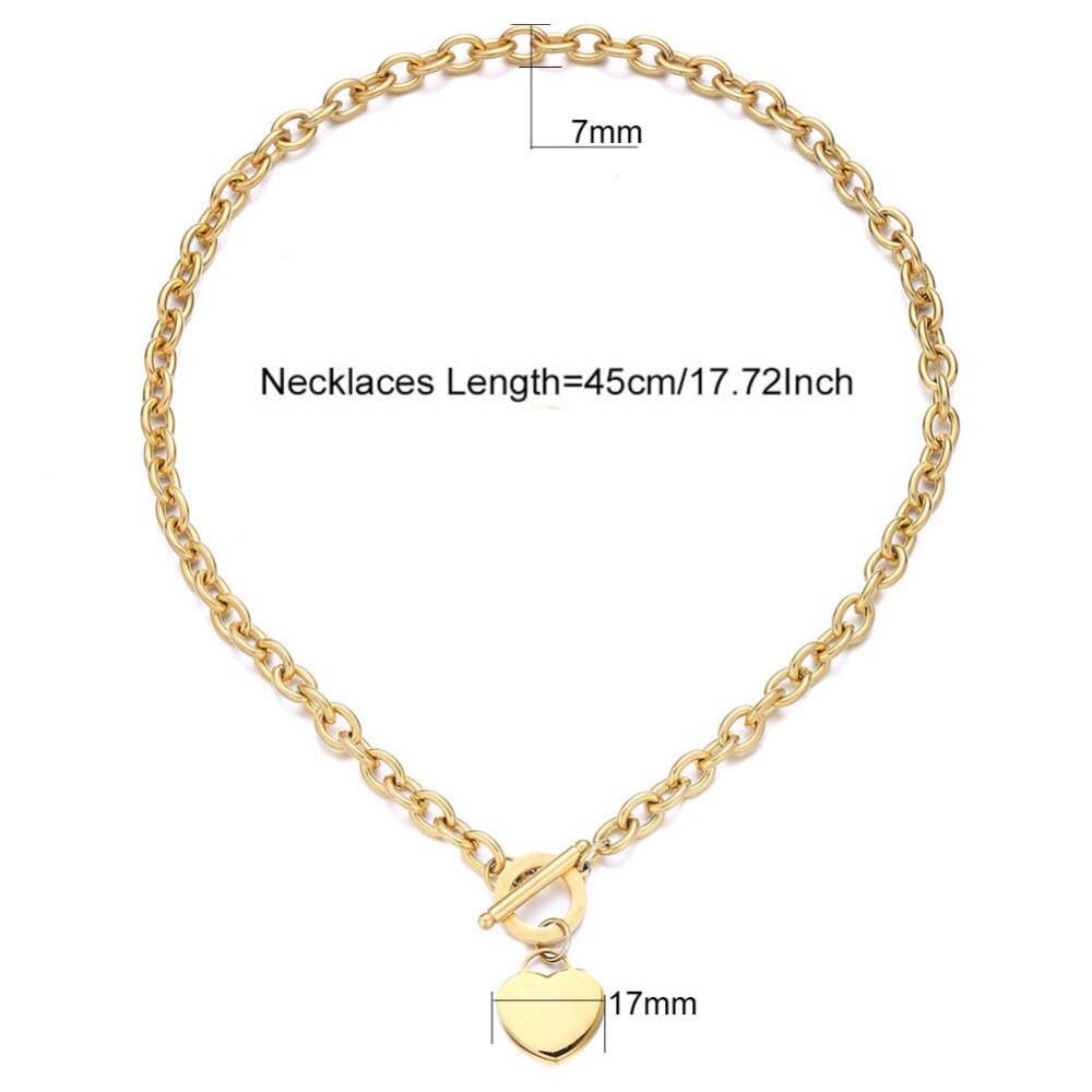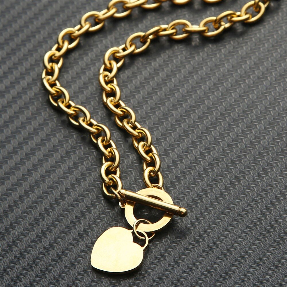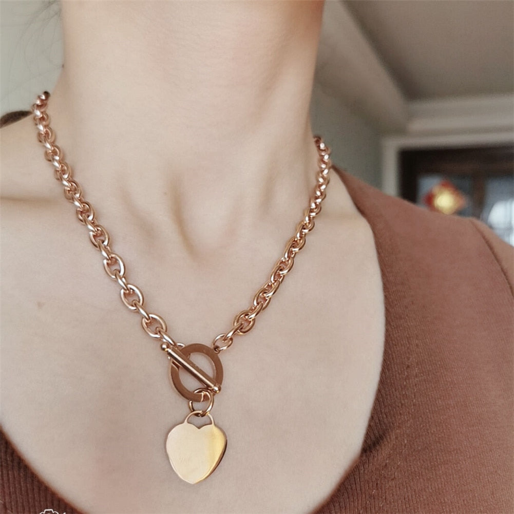 Design 316L Stainless Steel Chain Blank Heart Pendant Necklace For Women OT Buckle Toggle Choker Femme Jewelry