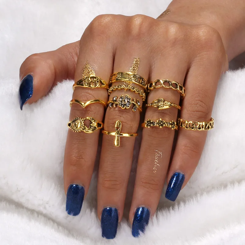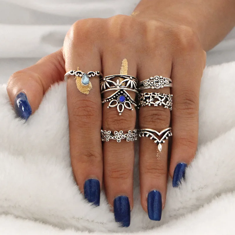 Design Vintage Punk Midi Rings Set Antique Gold Silver Boho Female Charms Jewelry Knuckle Ring For Women Fashion Party Gift