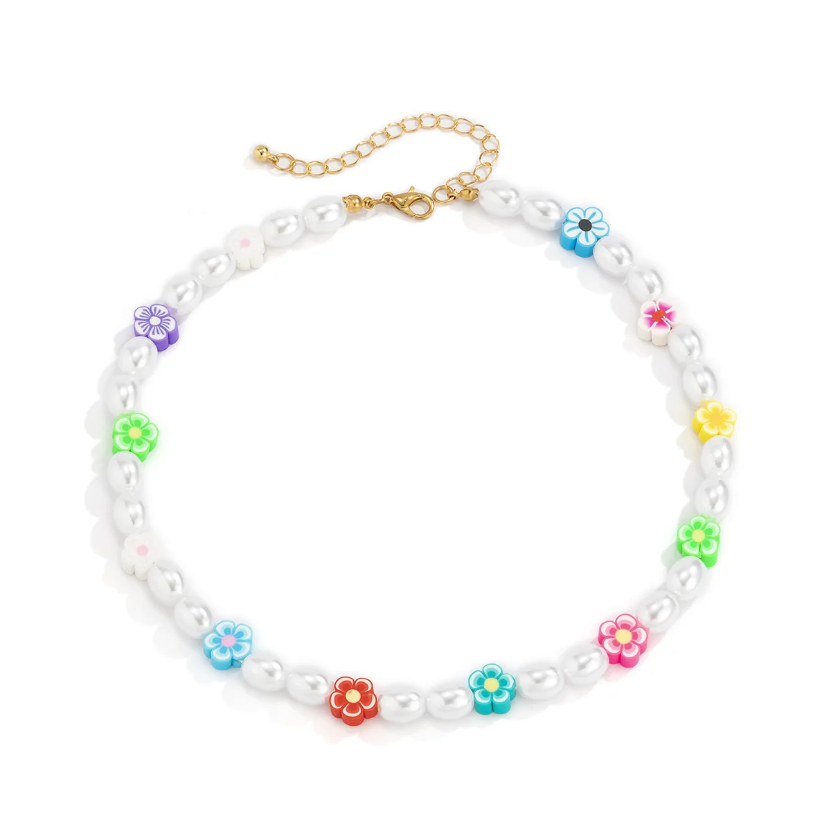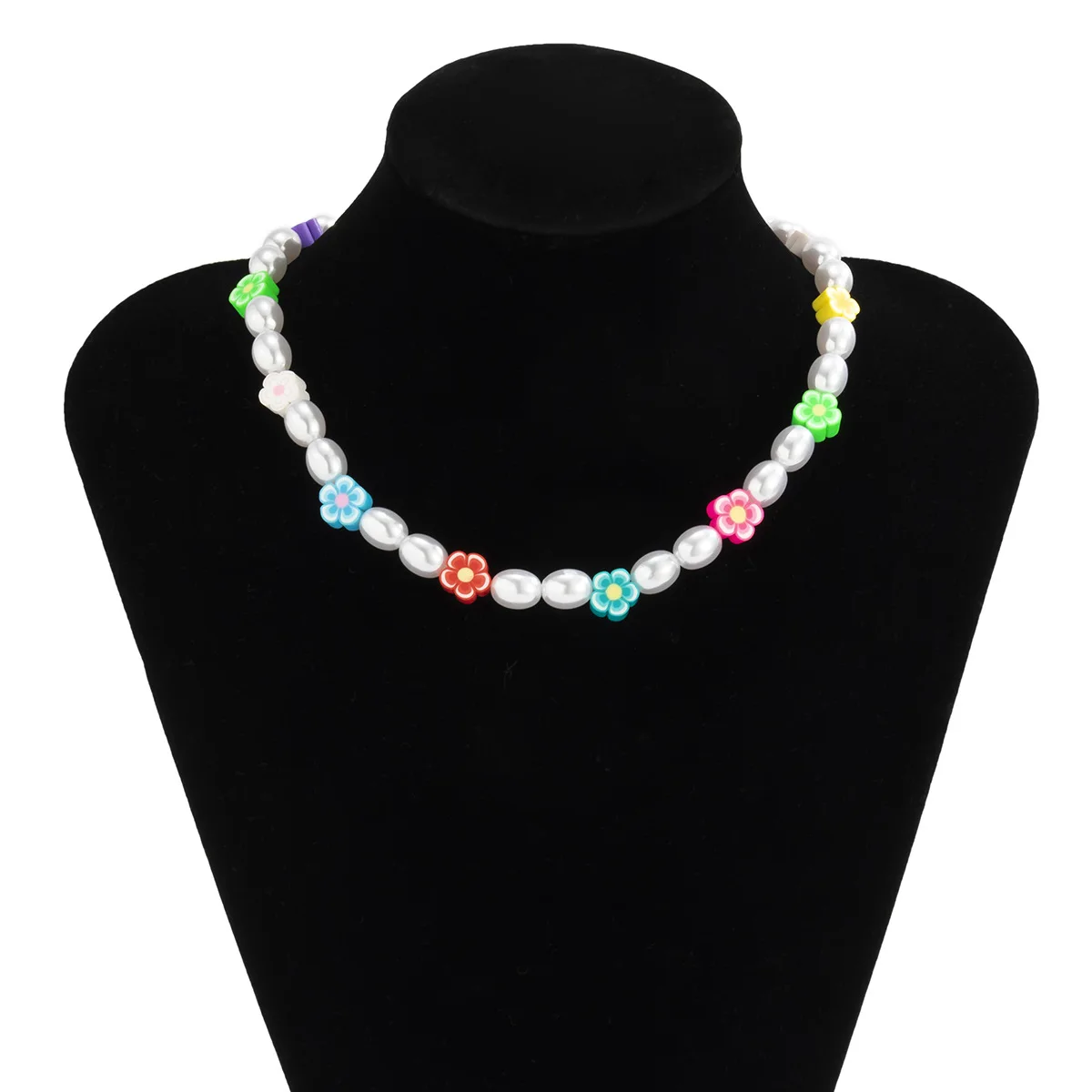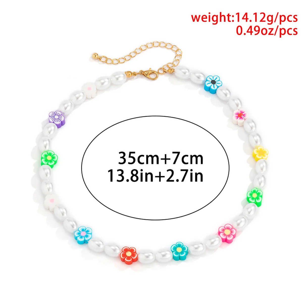 DIEZI Elegant Ethnic Soft Clay Beads Choker Necklace Bohemian Imitation Pearl Flower Star Necklaces Sweet Girls Jewelry