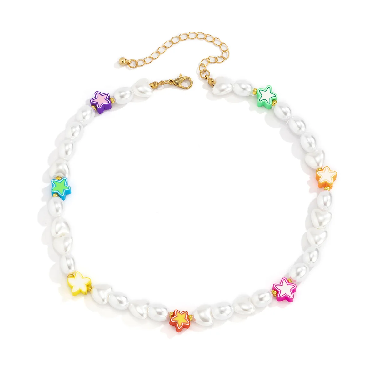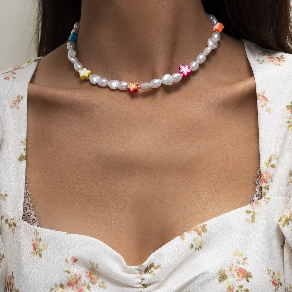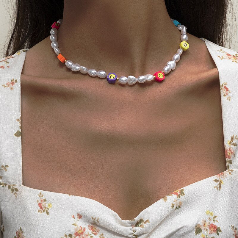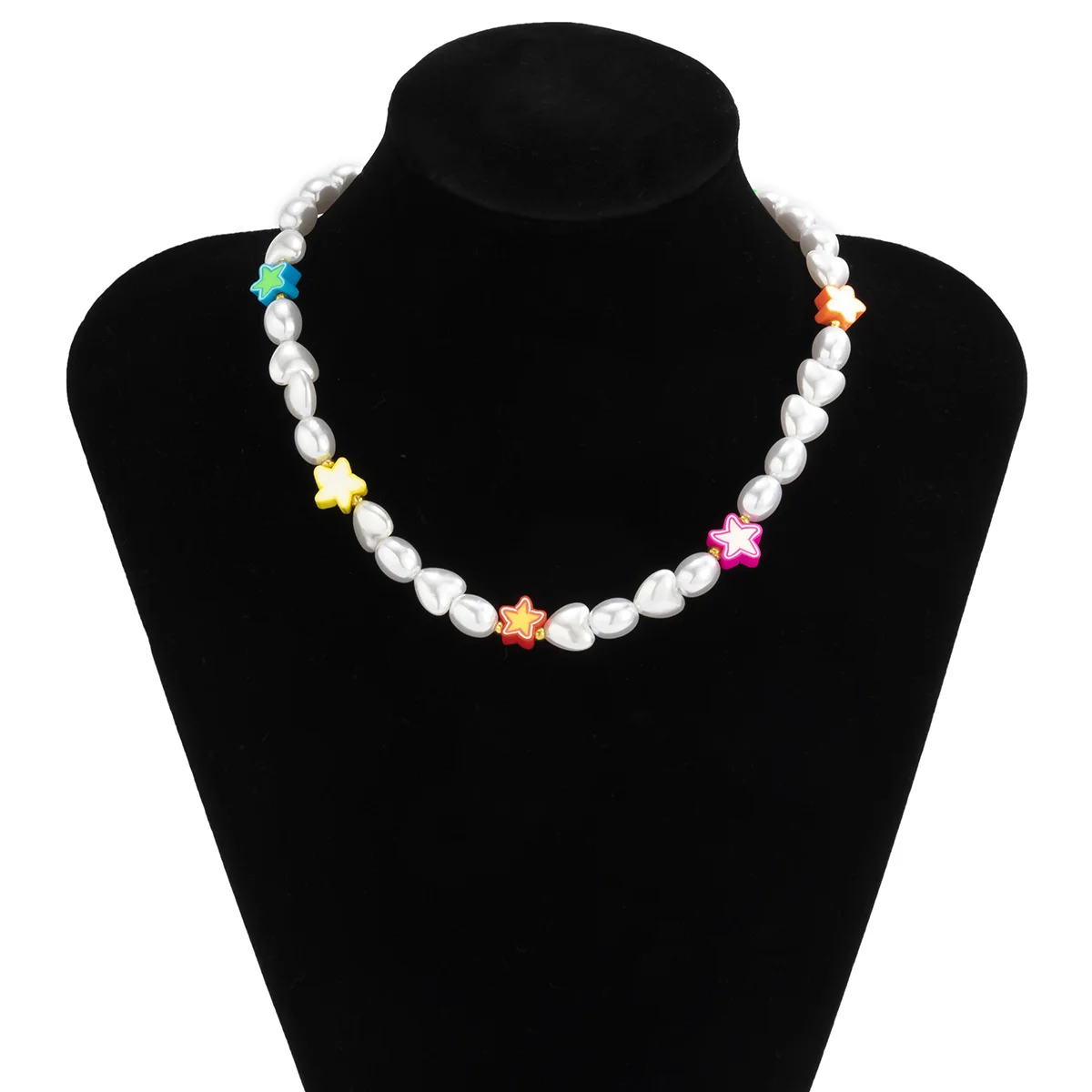 DIEZI Elegant Ethnic Soft Clay Beads Choker Necklace Bohemian Imitation Pearl Flower Star Necklaces Sweet Girls Jewelry