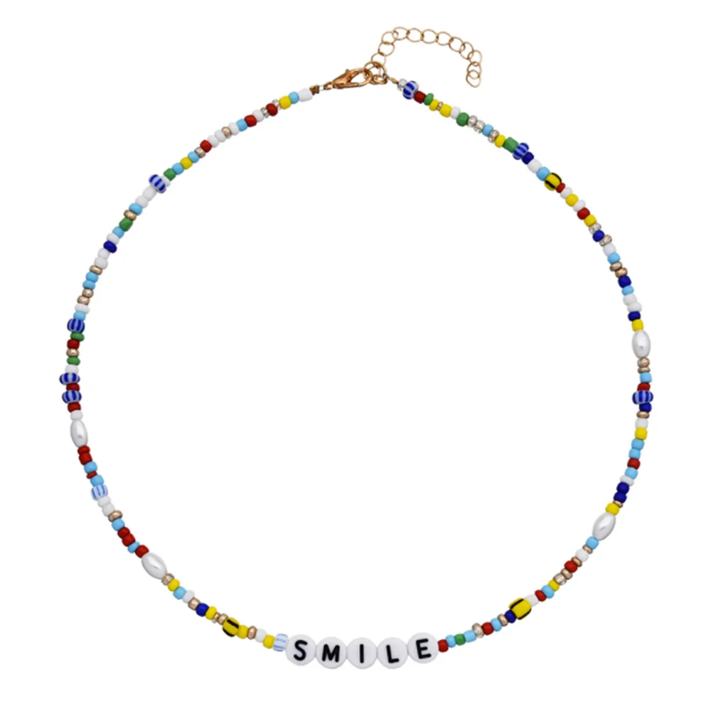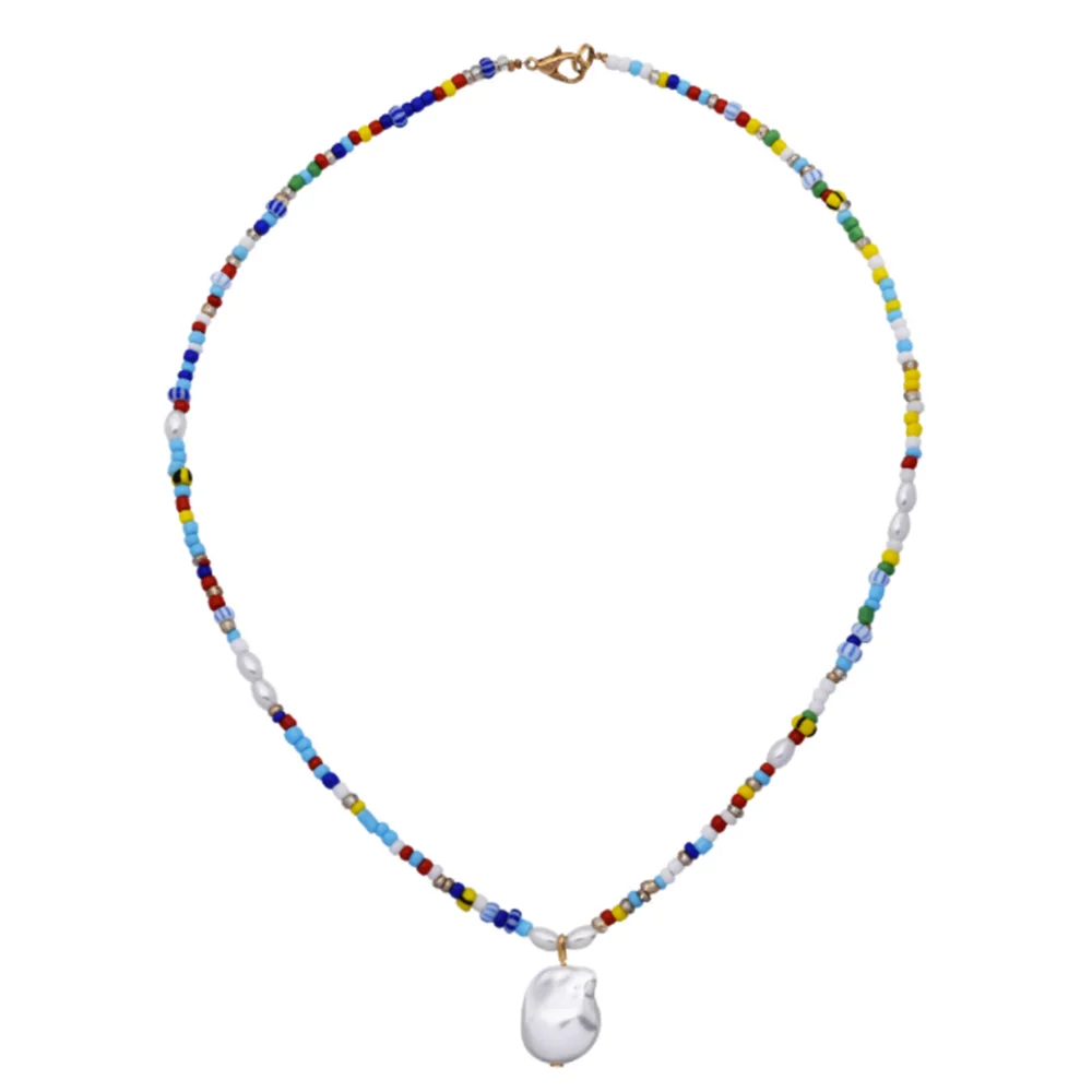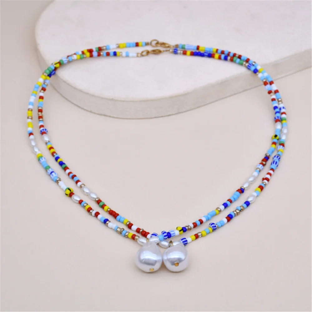 DIEZI Ethnic Multilayer Imitation Pearl Choker Necklace For Women Multicolor Acrylic Beads Letters Chain Necklace Jewelry