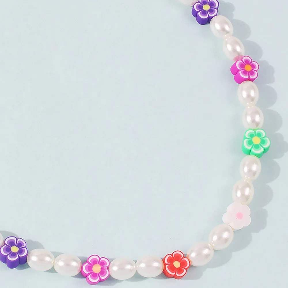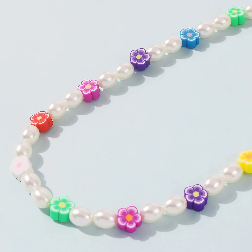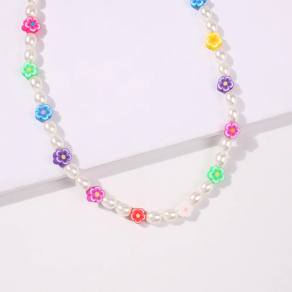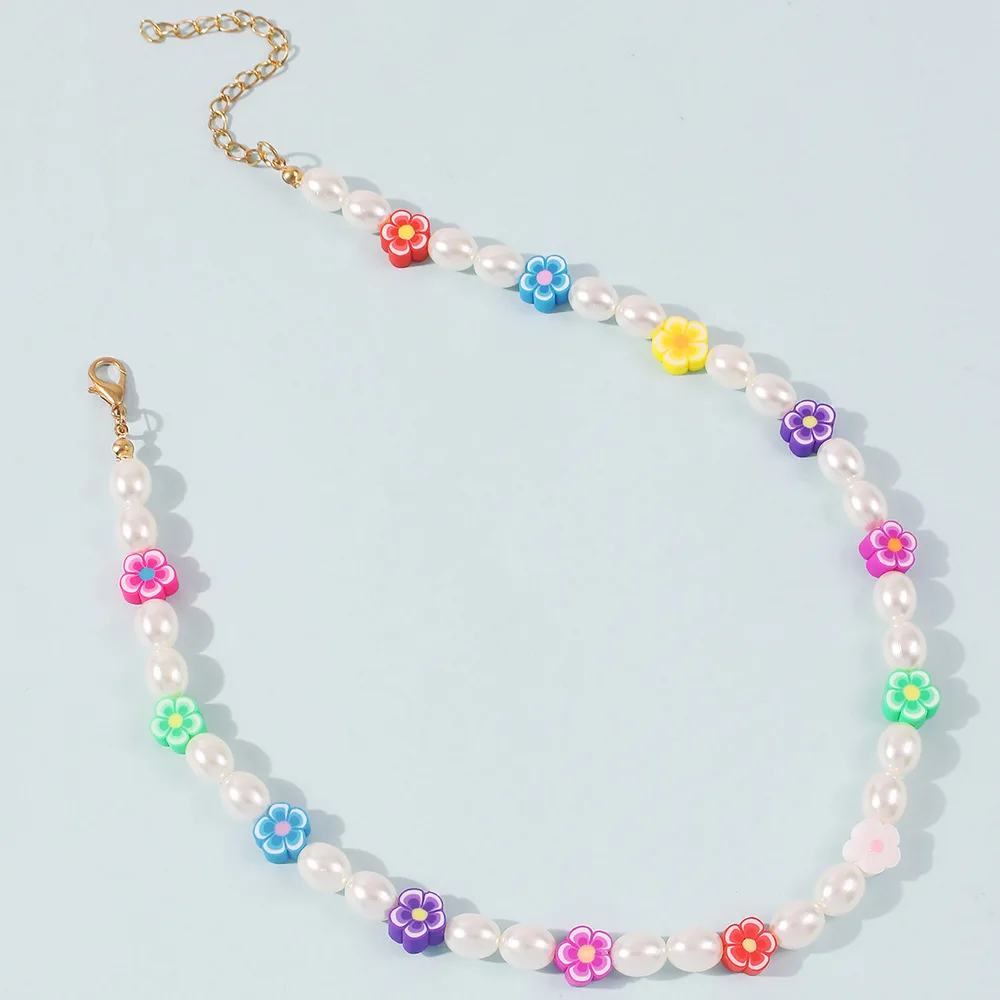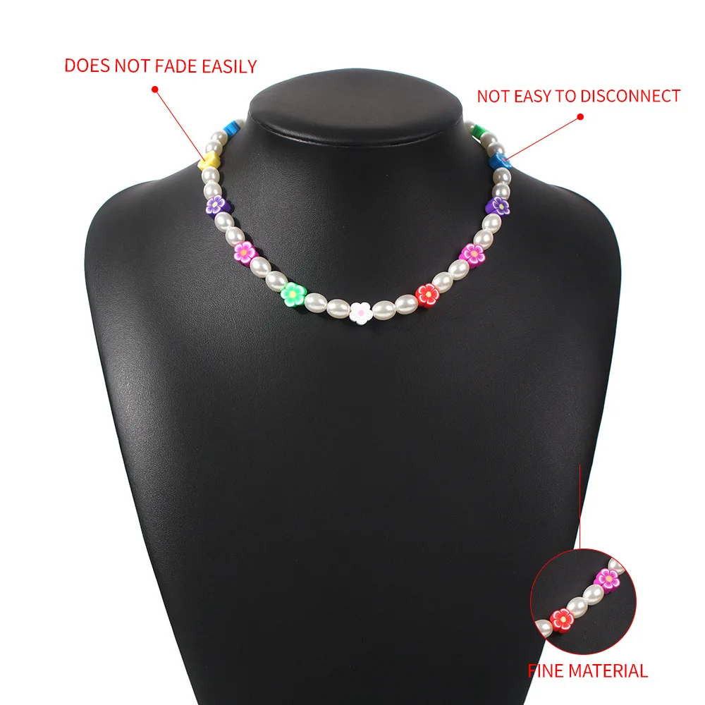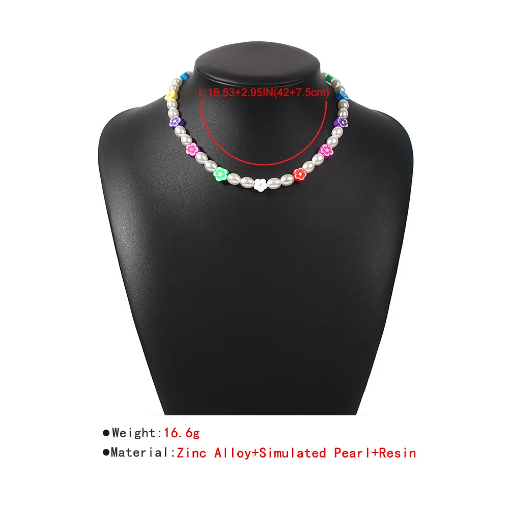 DIEZI Korean Bohemian Imitation Pearl Necklace For Women Sweet Girls Choker Necklace Multicolor Flower Beads Necklace Jewelry