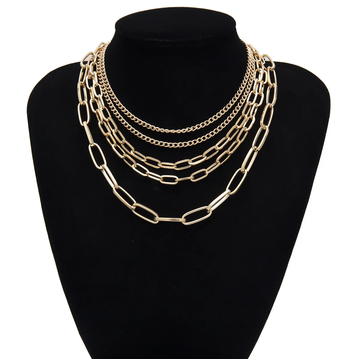 DIEZI Punk Multilayer Silver Color Gold Chain Statement Necklace Men Hip Hop Geometric Choker Necklaces for Women Party