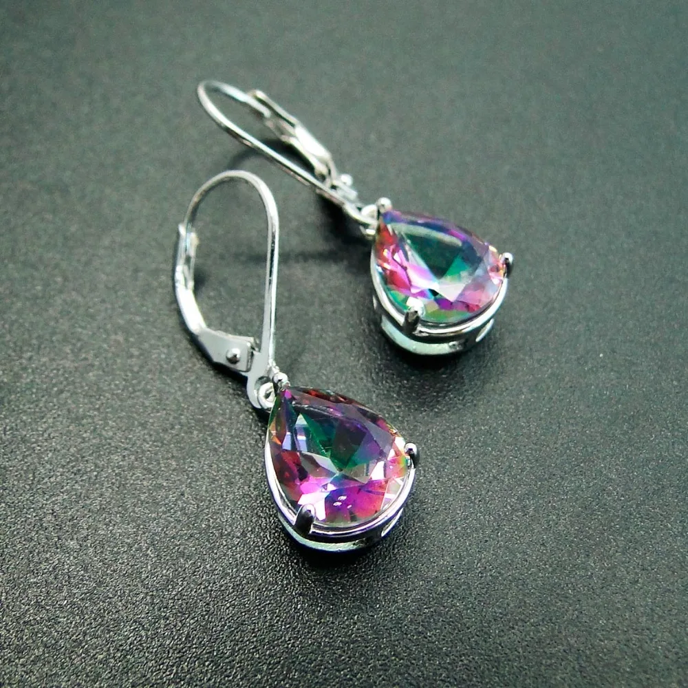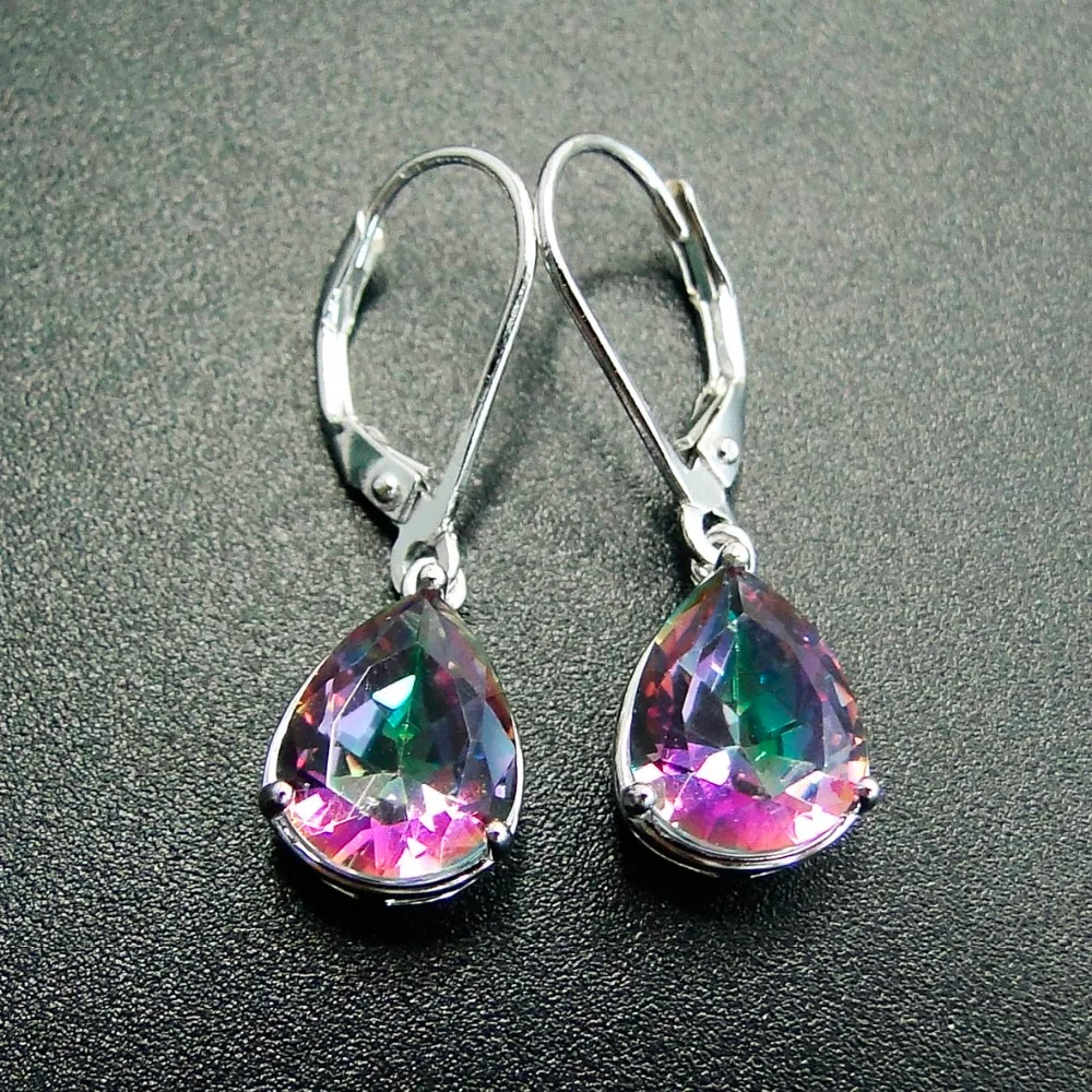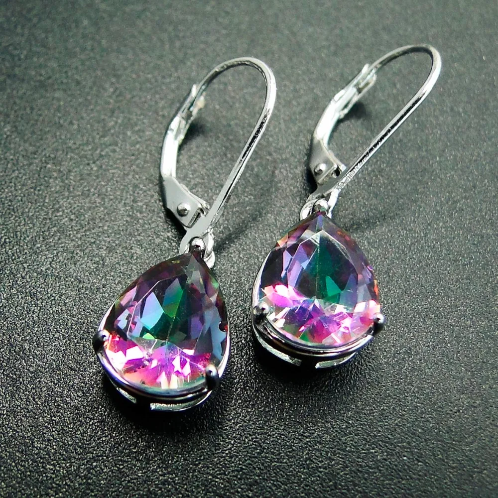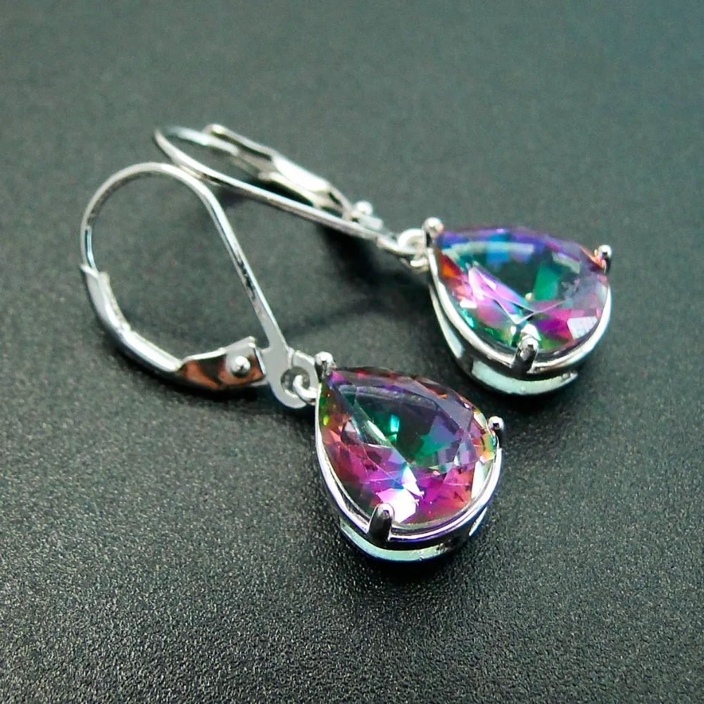 Pear Cut 8*10mm Fire Rainbow Mystic Topaz Drop Earrings Solid 925 Sterling Silver Women Vintage Fashion Fine Jewelry