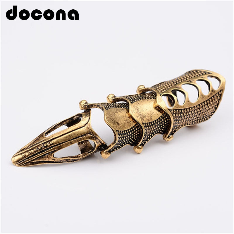 docona Punk knight Skull Armour Knuckle Midi Finger Rings for Women Gothic Gold Alloy Adjustable Ring Party Jewelry