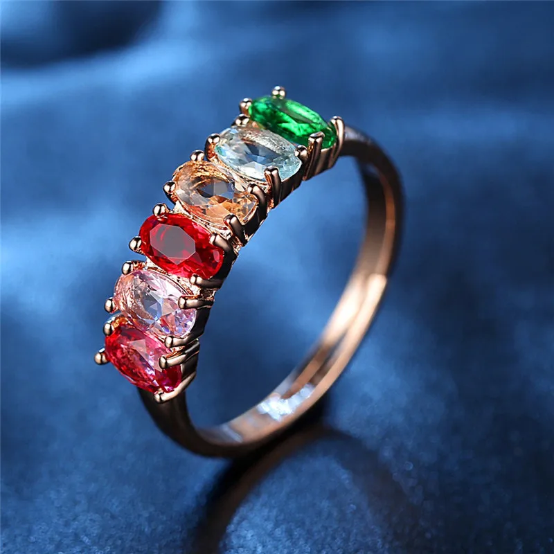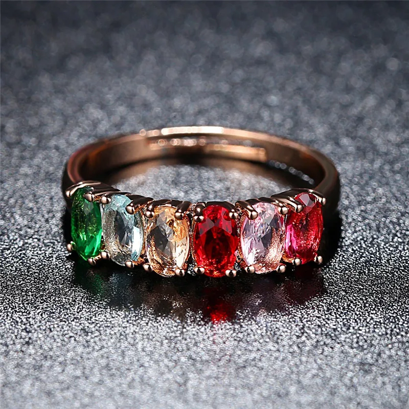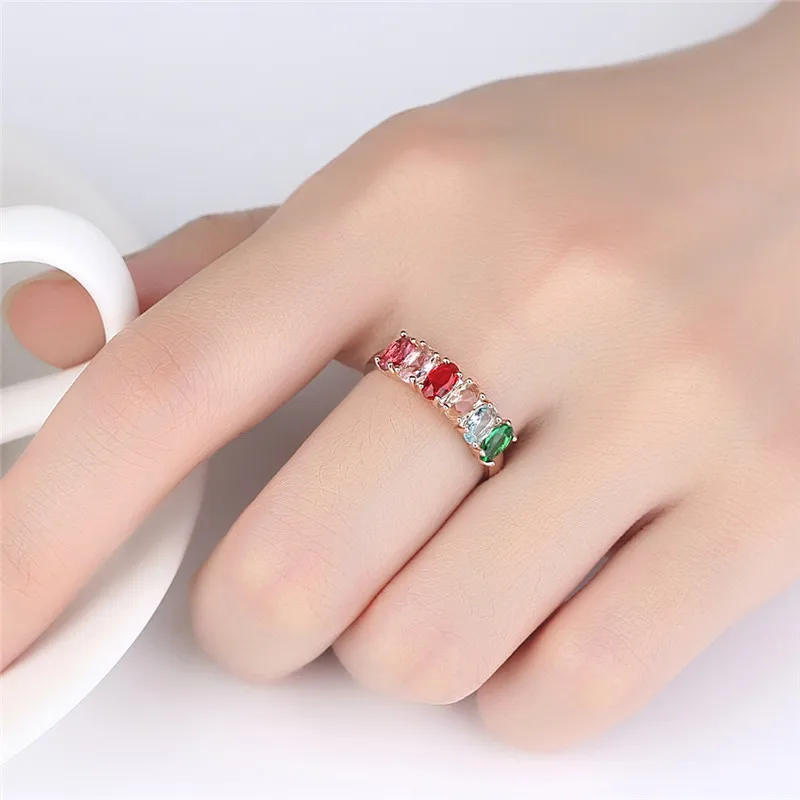 DODO Charming Rainbow Color Stone Open End Rings For Women Rose Gold Color Fashion Jewelry Wedding AAA Zircon Ring Bijoux R392