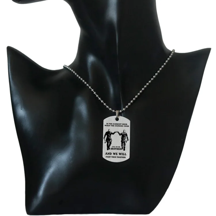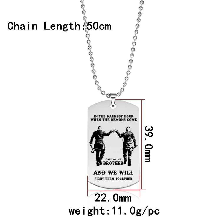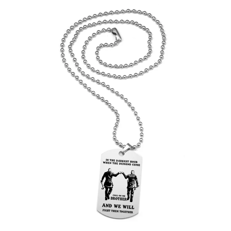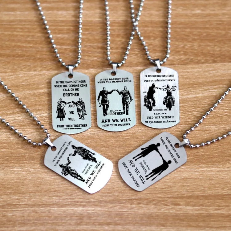 Dog Tag Pendant Necklace For Men Motorcycle Army Brothers Soldier Tough Man BFF Jewelry In The Darkest Hour When The Demons