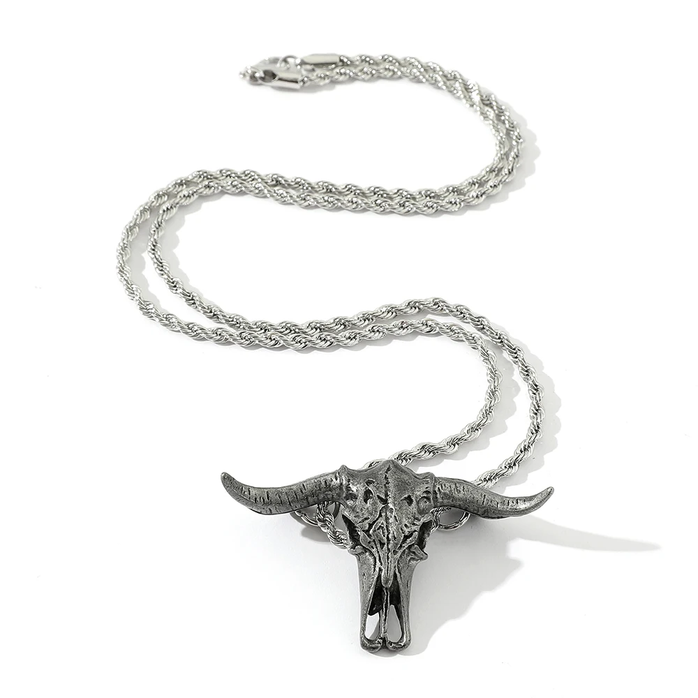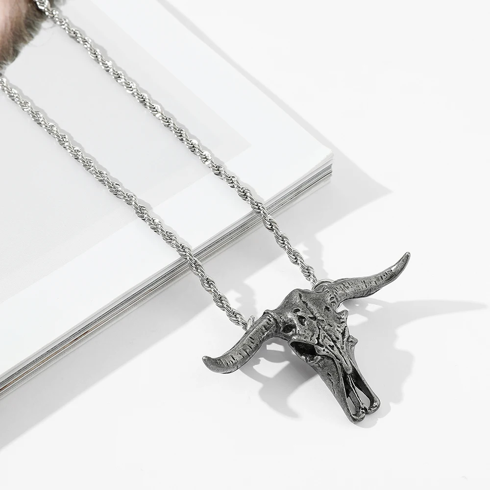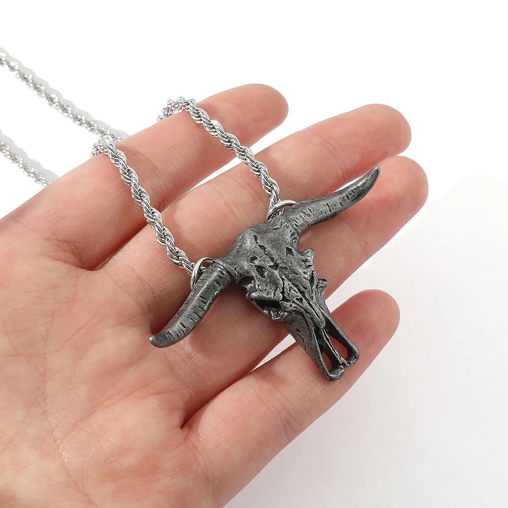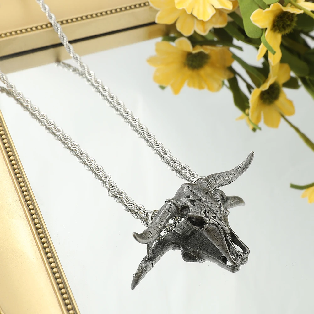 Domineering Gothic Skull Bull Head Pendants Necklace Women Men Punk Rock Neck Chain Hip Hop Jewelry Gift For Friends