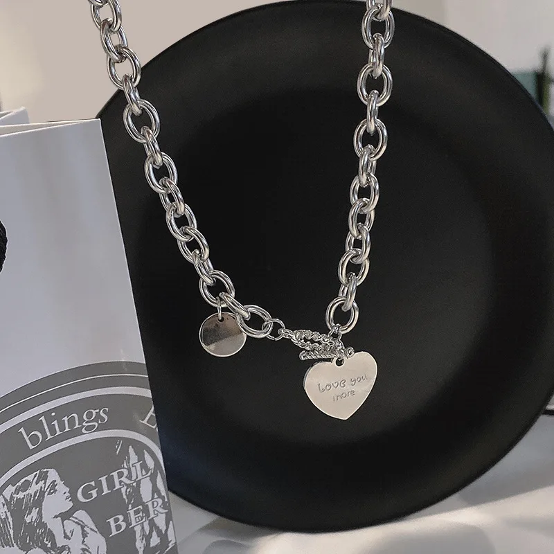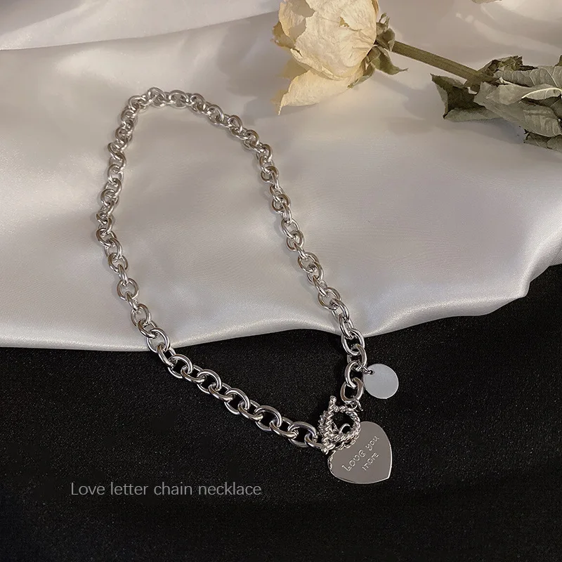 Dongdaemun love necklace for women female ins cold wind niche design sense trendy net red simple hip-hop clavicle chain