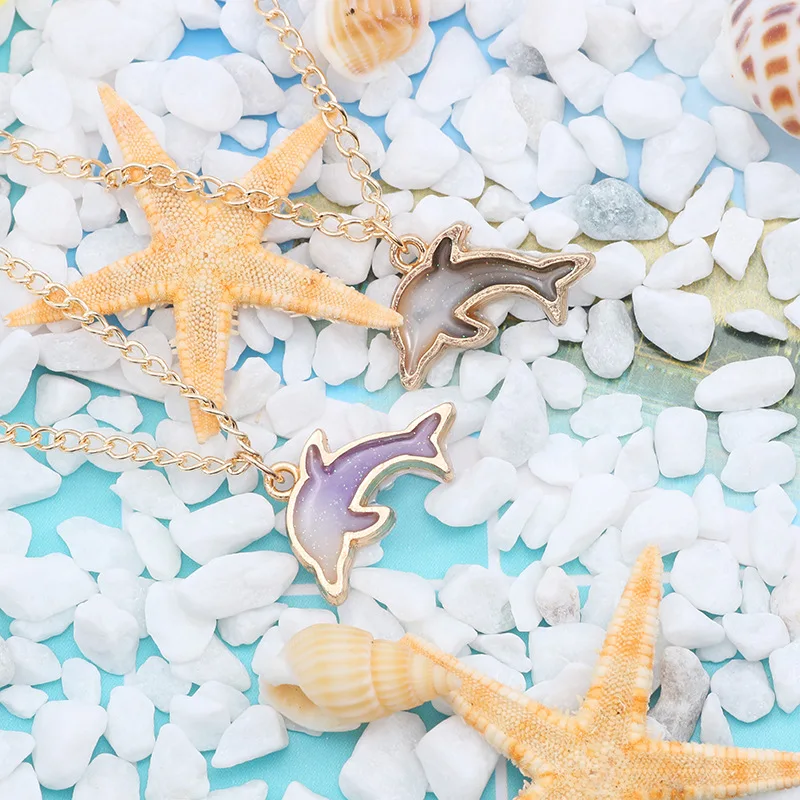 Doreen Box Korean Cute Little Dolphin Necklace Jewelry Golden Alloy Small Pendant Beautiful Cartoon Accessories For Women Girl