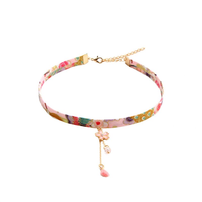 DoreenBeads Classic Japanese Style Ribbon Rope Doll Choker Cute Romantic Women Pink Flower Bead Pendant Short Necklace,1 PC