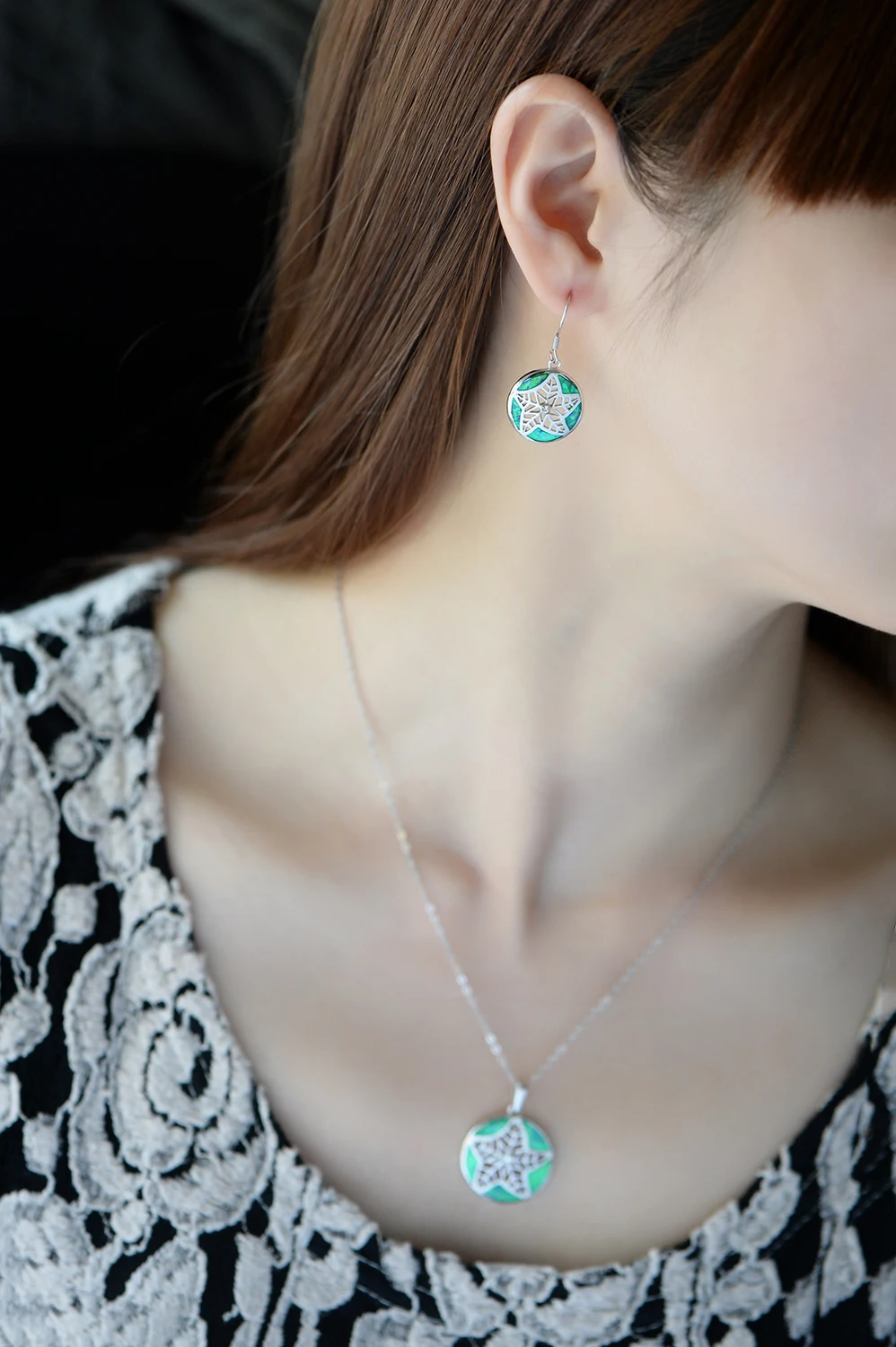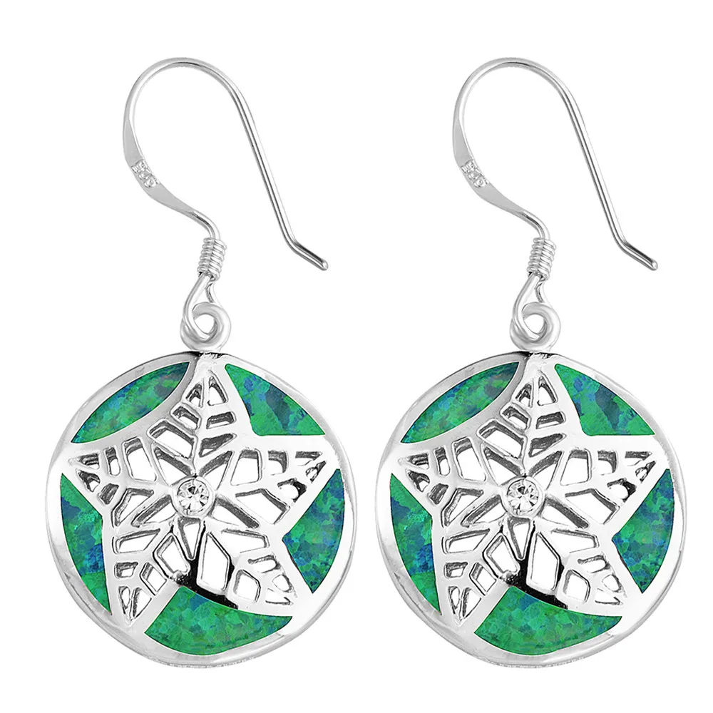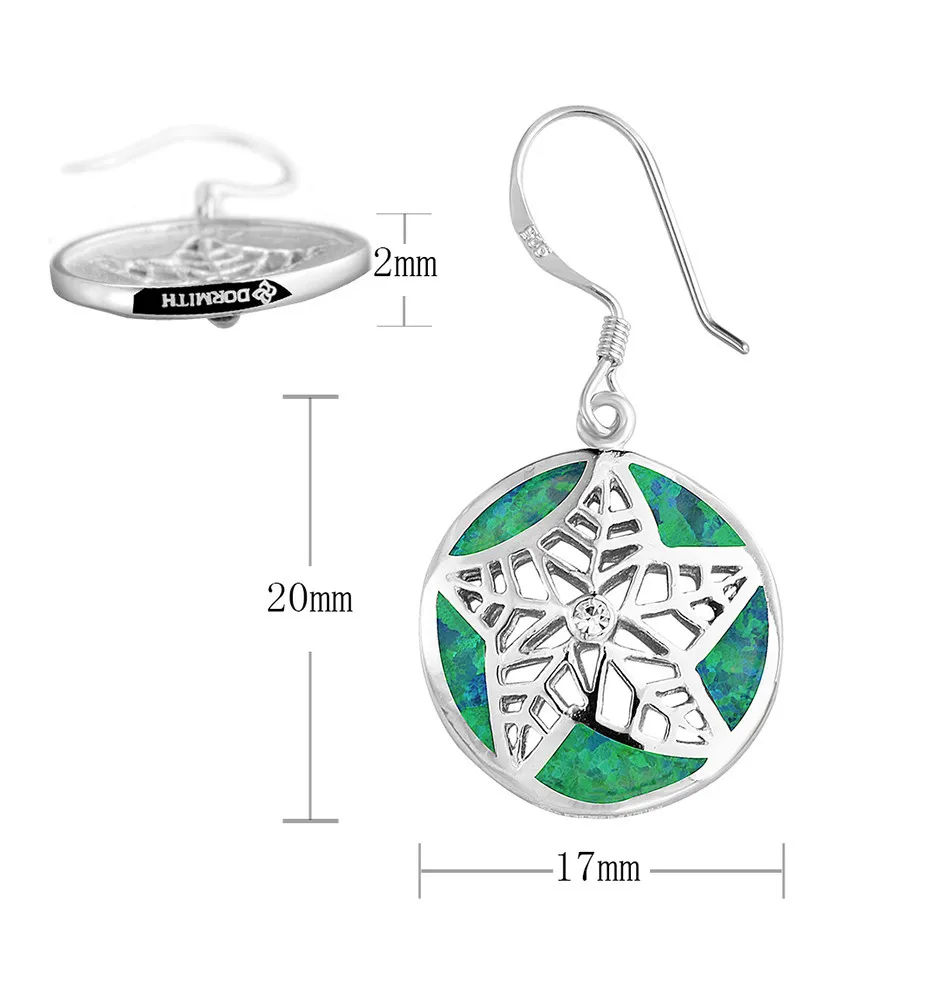 925 Sterling Silver Created Green&blue fire opal Starfish Earrings 20mmx17mm Jewelry for women