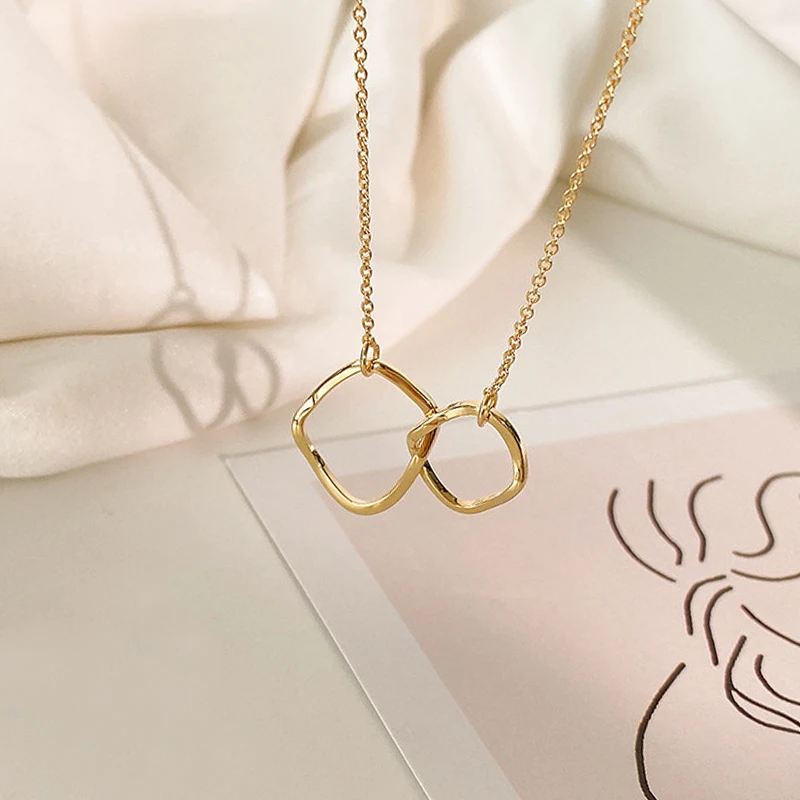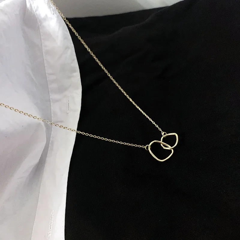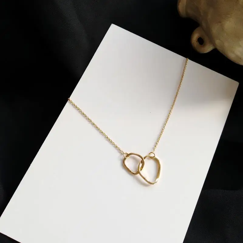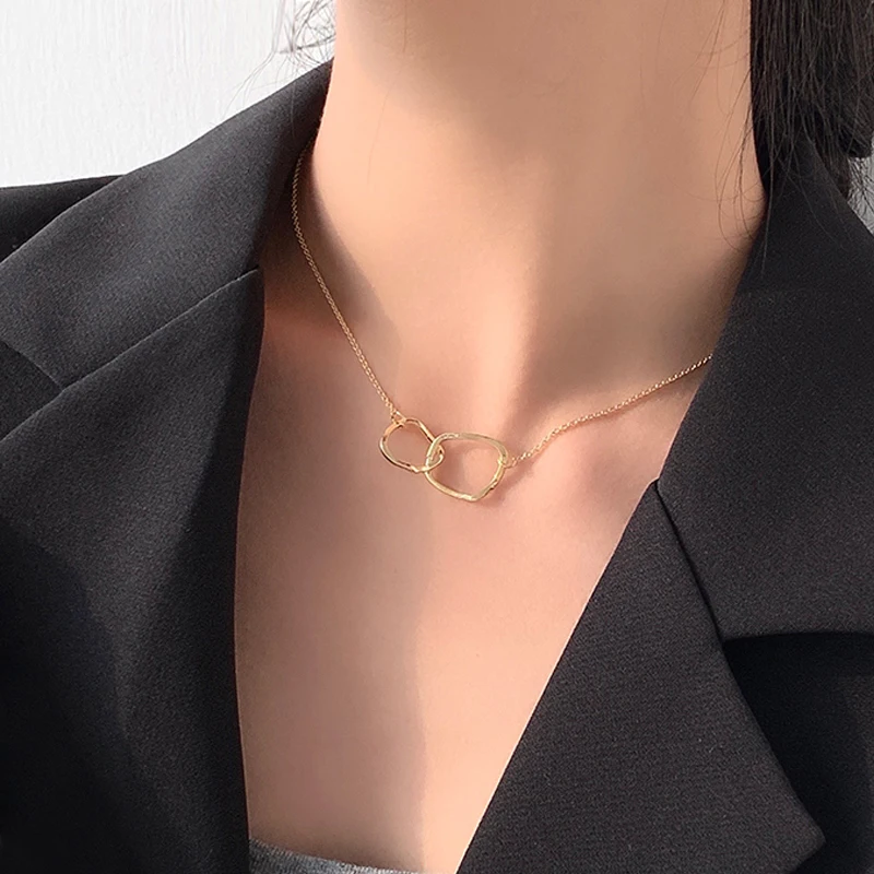 Double Circle Interlocking Clavicle Short Necklace Golden Necklace Choker for Women Girls Ladies Jewelry Accessories