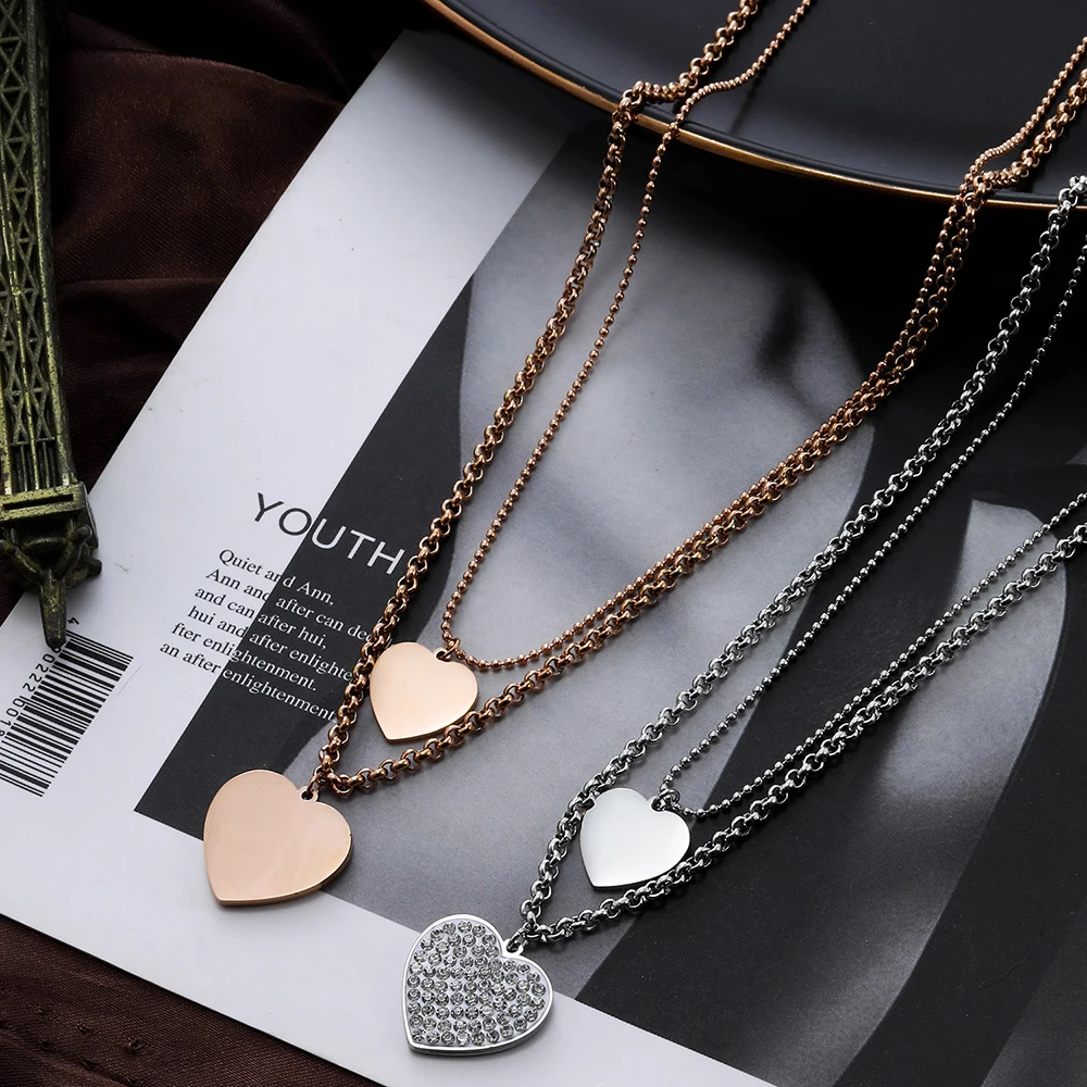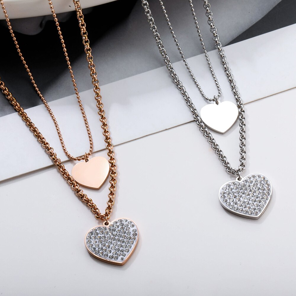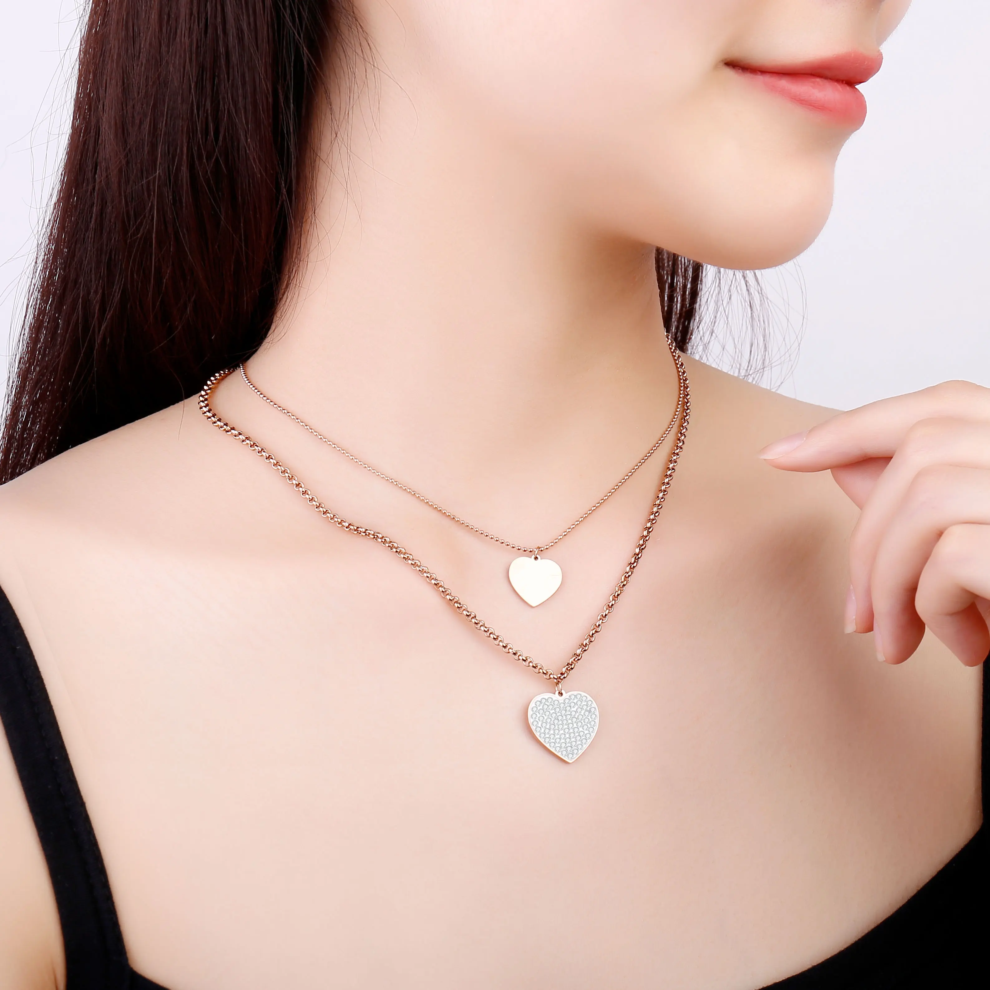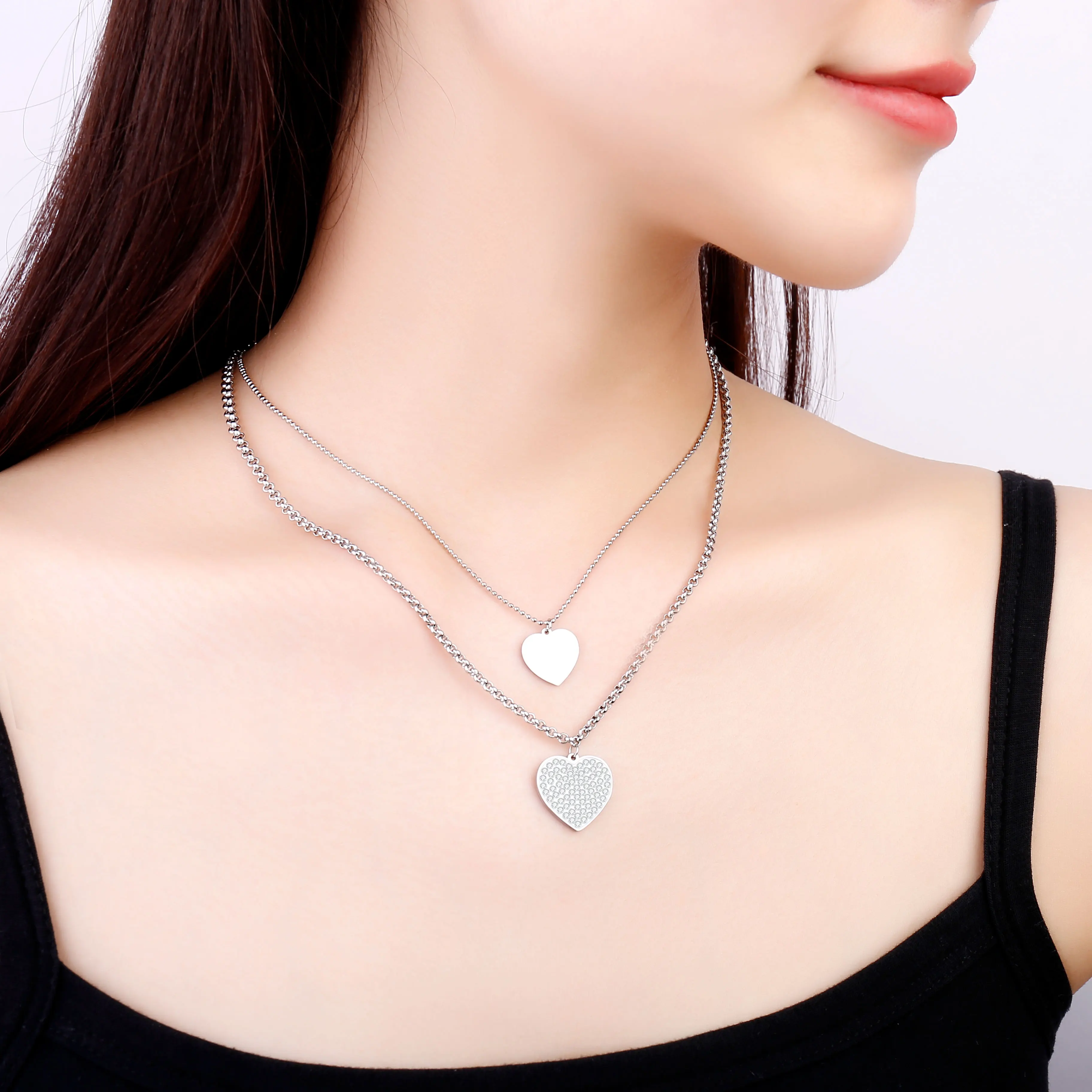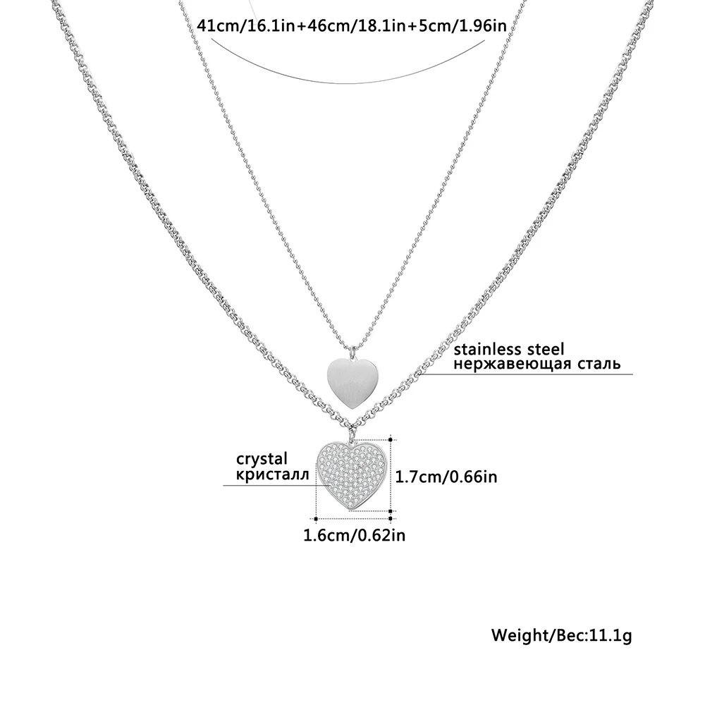 Double Layer CZ Heart Stainless Steel Necklace For Women 2 Crystal Heart-shaped Choker Necklaces For Lover 2022 Jewelry Gift