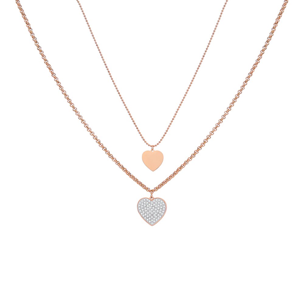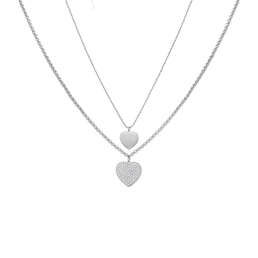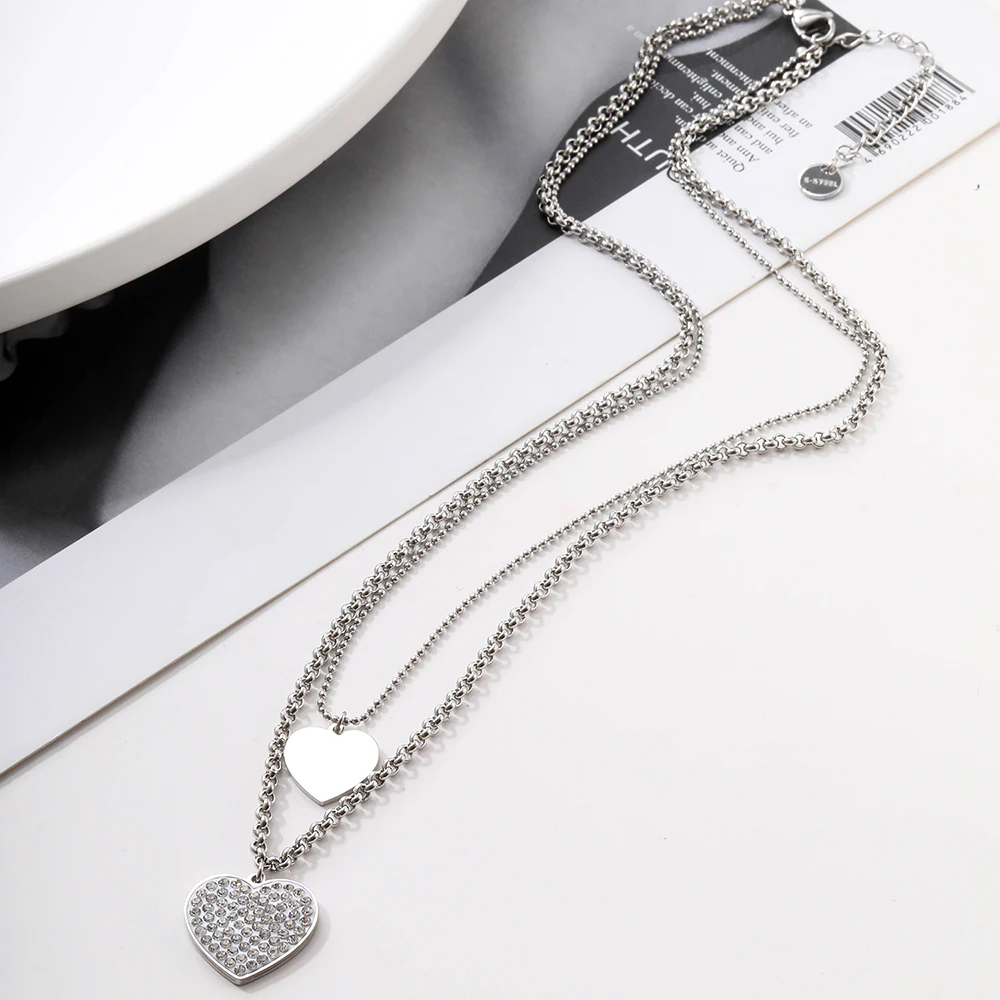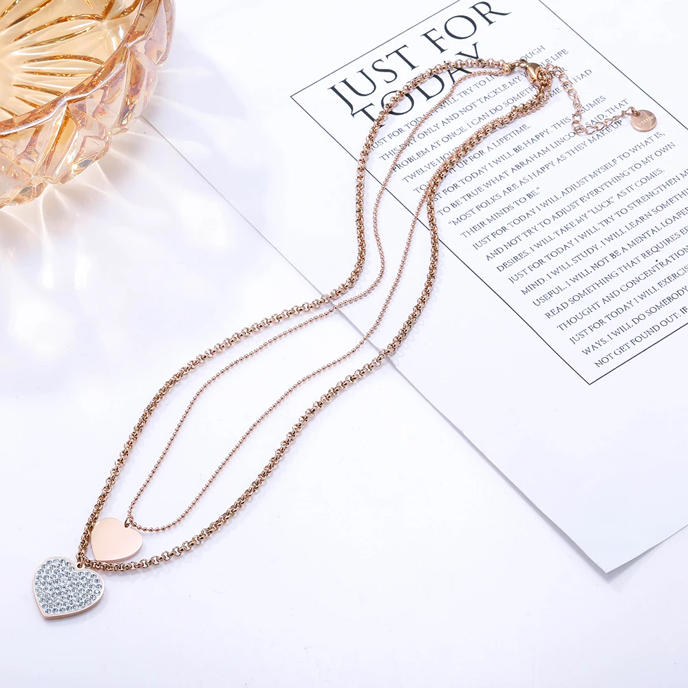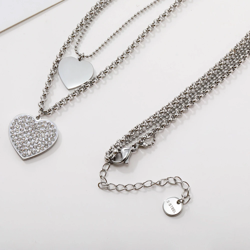 Double Layer CZ Heart Stainless Steel Necklace For Women 2 Crystal Heart-shaped Choker Necklaces For Lover 2022 Jewelry Gift